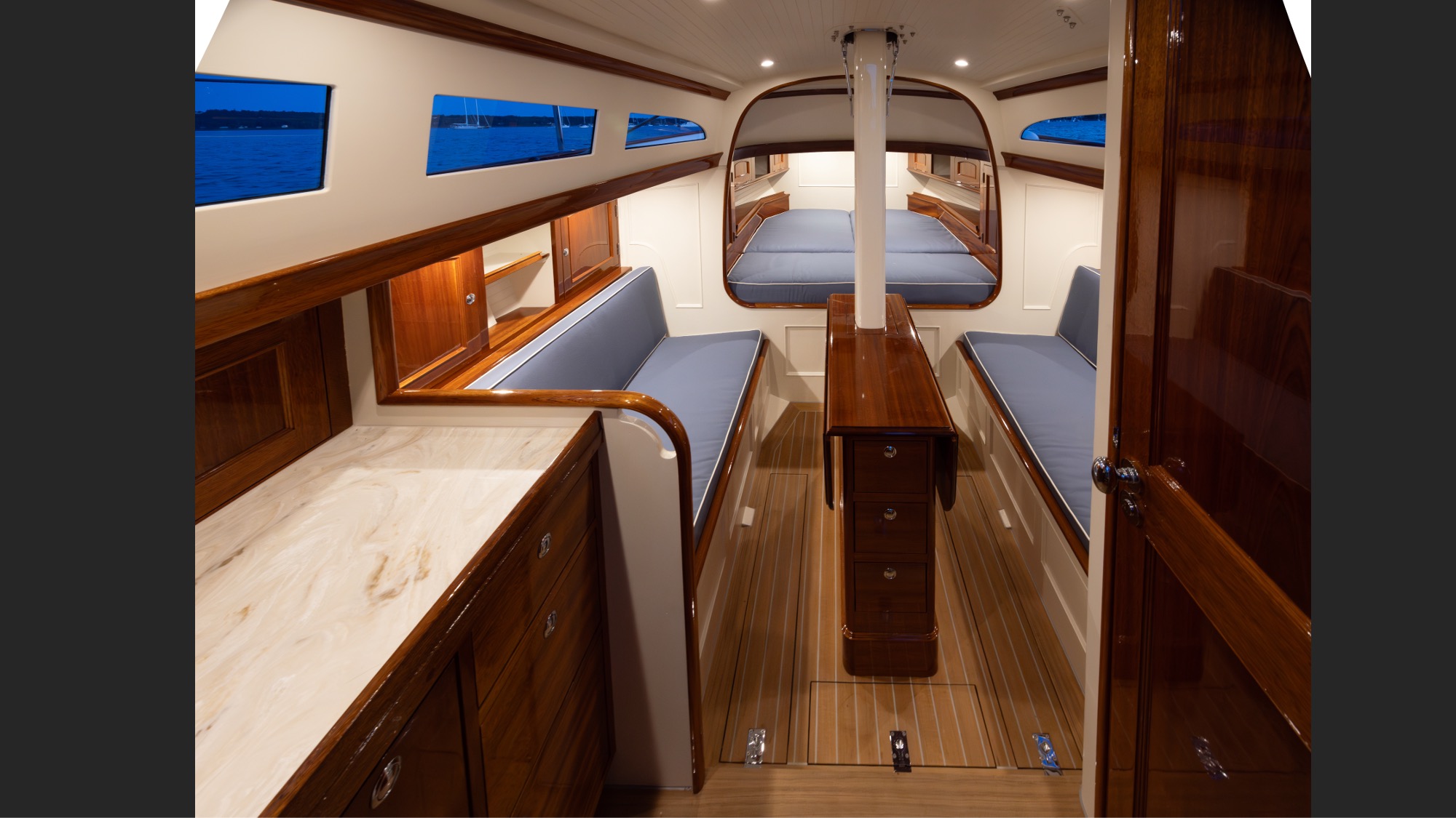 Crafted with a singular focus to design the ultimate daysailing experience, the 12 m Wisp prioritizes comfort and ease of operation, with a timeless aesthetic. Her size is a calculated choice, ensuring standing headroom in both the galley and head, and setting the stage for a remarkable daysailing adventure or overnight escape. While packing plenty of performance under sail, she effortlessly transforms into a luxury weekender, featuring saloon seating for four and a queen-size forward berth.