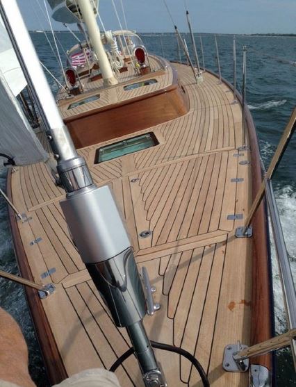 The final advantage: in today’s classic-fleet rating systems, a gaff-rigged boat earns a substantial rating reduction compared to the same boat with a Marconi rig. So is she a rule-beater? Maybe so.