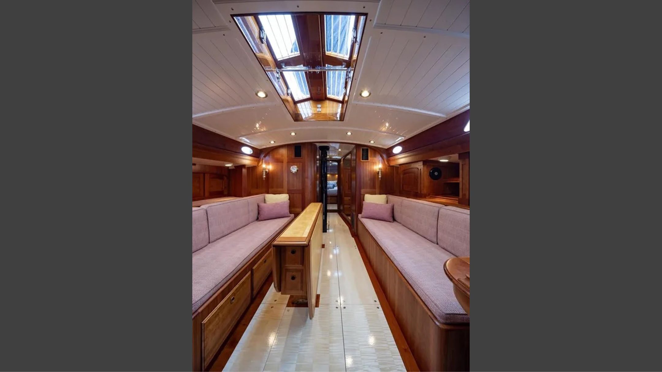 Under sail, she’s a revelation: powerful, exquisitely balanced, and a joy to handle. Thanks to her light displacement and easily-driven hull, she carries a modest sail plan that’s exceptionally manageable. Her long counter and low wetted surface make her ghost through light air, while her clean lines and optimized run unleash double-digit speeds under spinnaker when the breeze fills in. Her competitive pedigree includes a 2nd in class in the 2006 Newport–Bermuda Race—a testament to her race-winning potential.