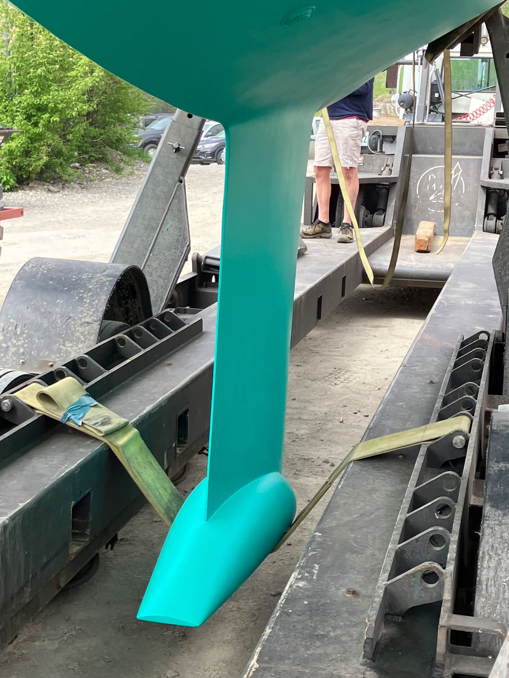 When the new keel was installed, the floor grid system was redesigned and reinforced to incorporate longitudinal structure of mahogany with a top plate grid of ¼-inch thick G-10 fiberglass plate to assure that grounding loads would be well-distributed into the hull structure and bulkheads.