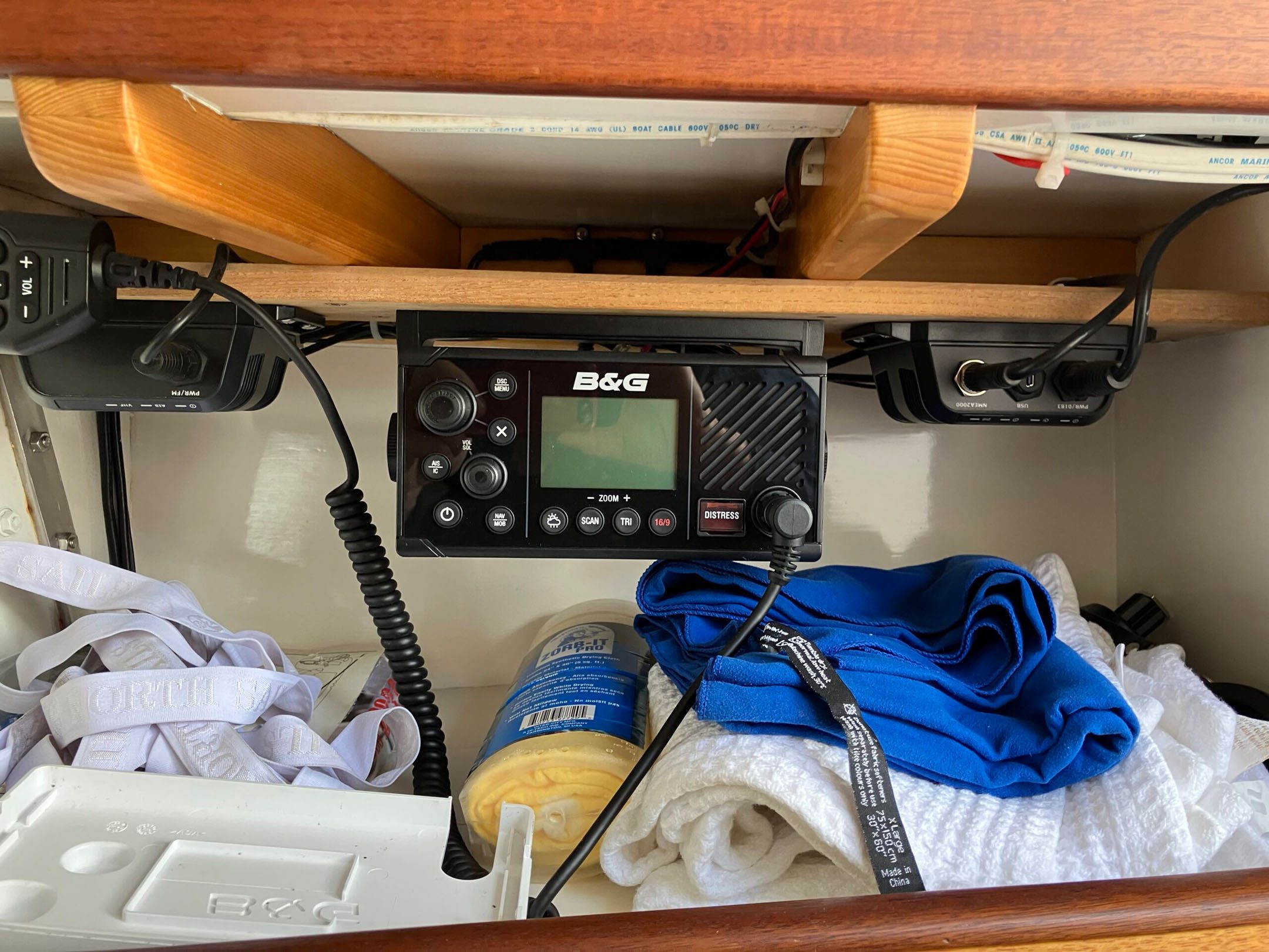 B & G VHF radio with DSC, AIS transponder and wireless remote hand-held mic, 2022.