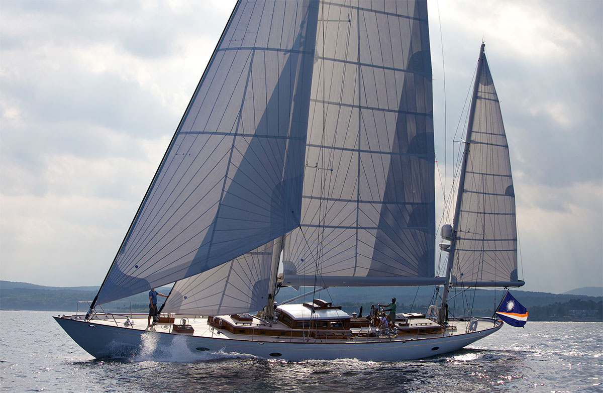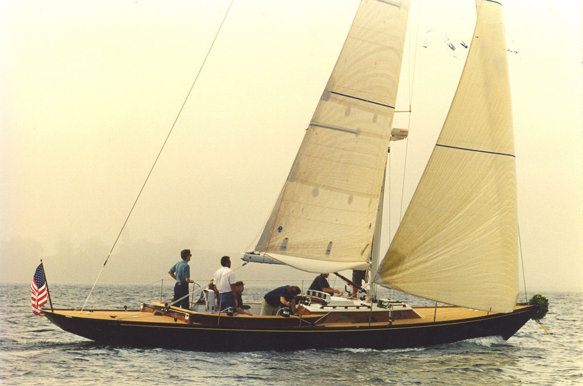 Here’s what happened: It was a normal Maine summer day. Half work, half play. Paul and I were out of the office, moving Hoi An from her mooring in Blue Hill to Camden. Her owners had kindly loaned the yacht to us for racing in the Camden Classics Cup to act as sponsor’s boat. The morning fog had cleared and a cracking breeze had come up; we were closing Camden fast, beam-reaching at over eight knots.