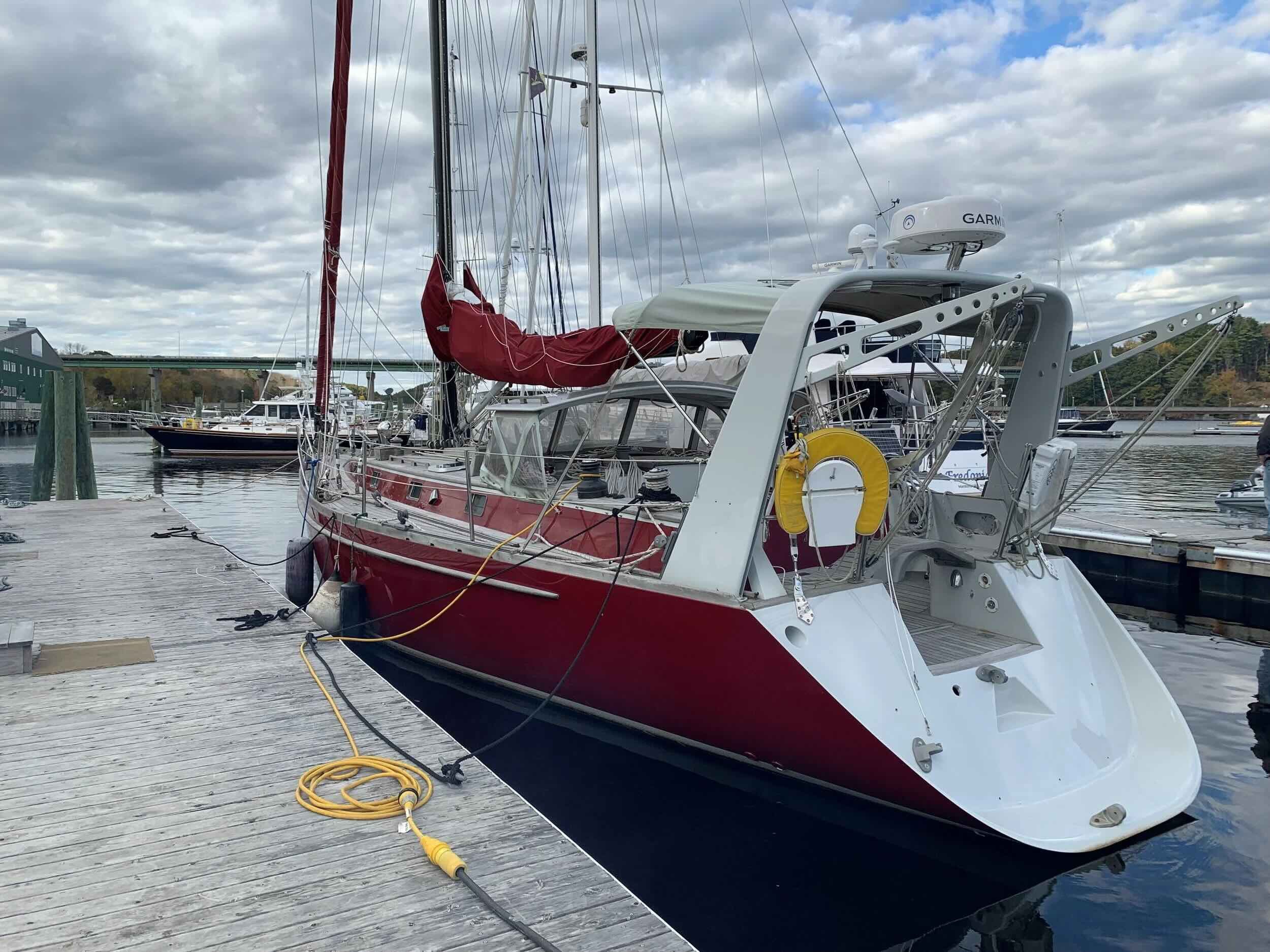 Lucayo was built by Brooklin Boat Yard — one of the most respected yards in Maine — and designed by Roger Marshall for an experienced offshore family. She was conceived as a fast, strong, long-range passage-maker. And she delivered on that promise, extensively, over decades of serious blue-water use.