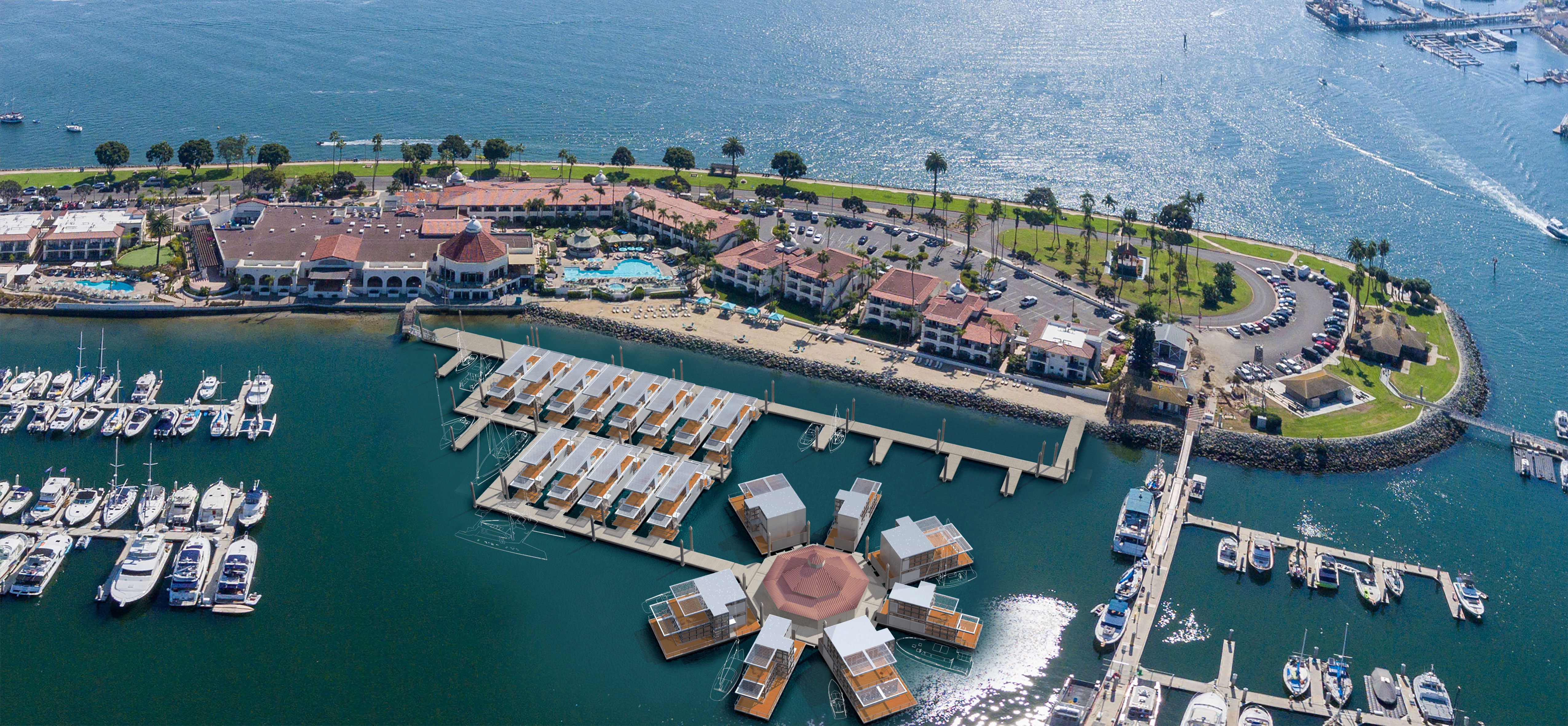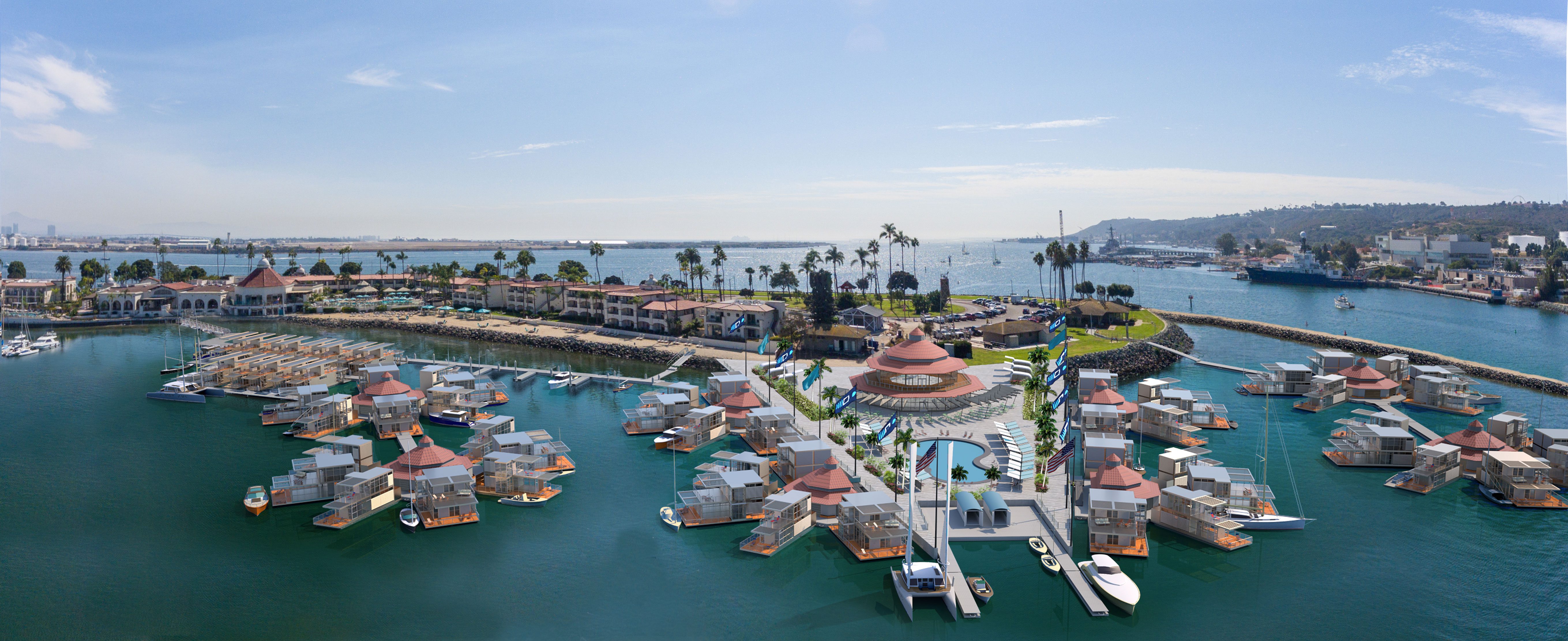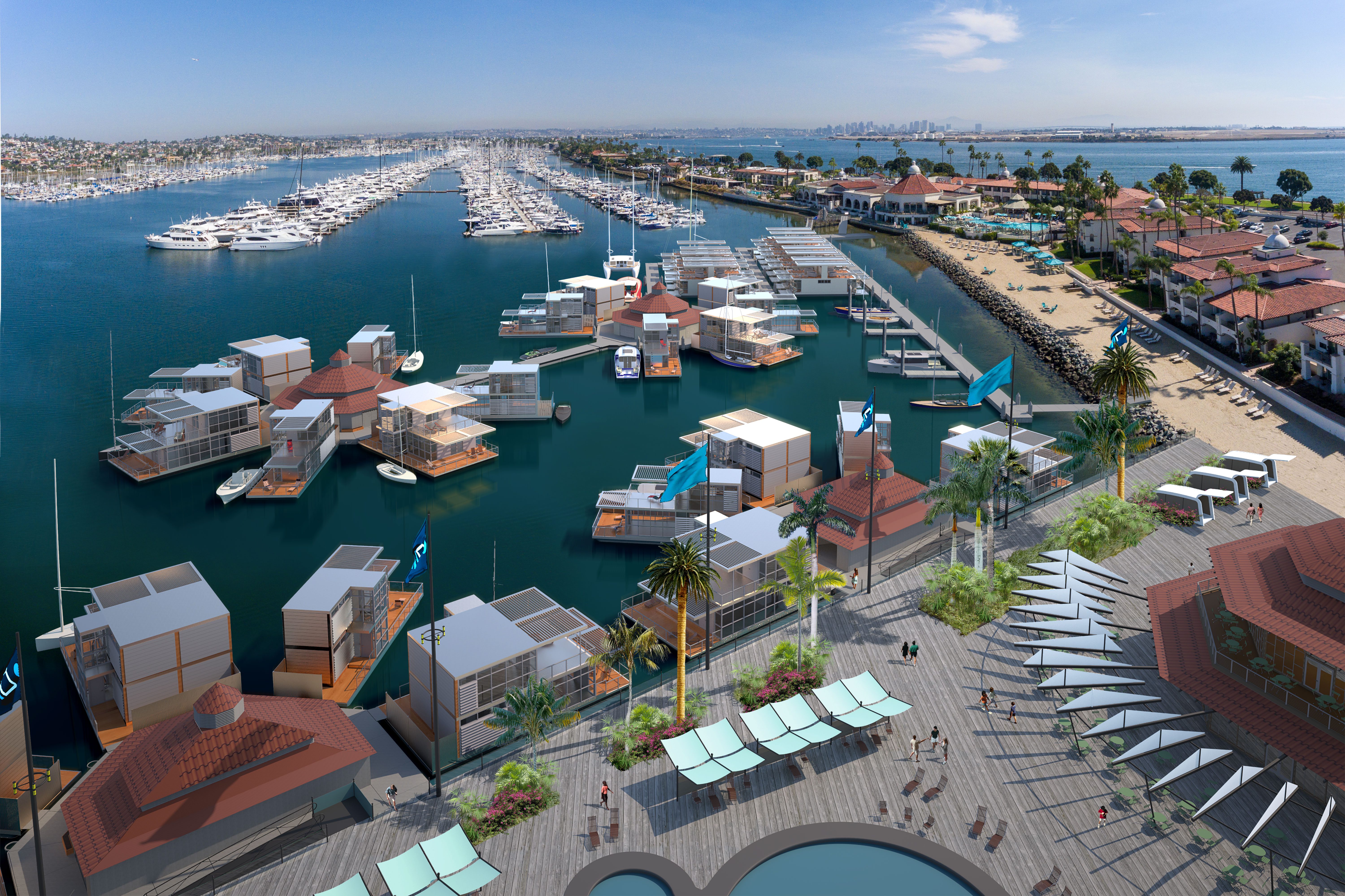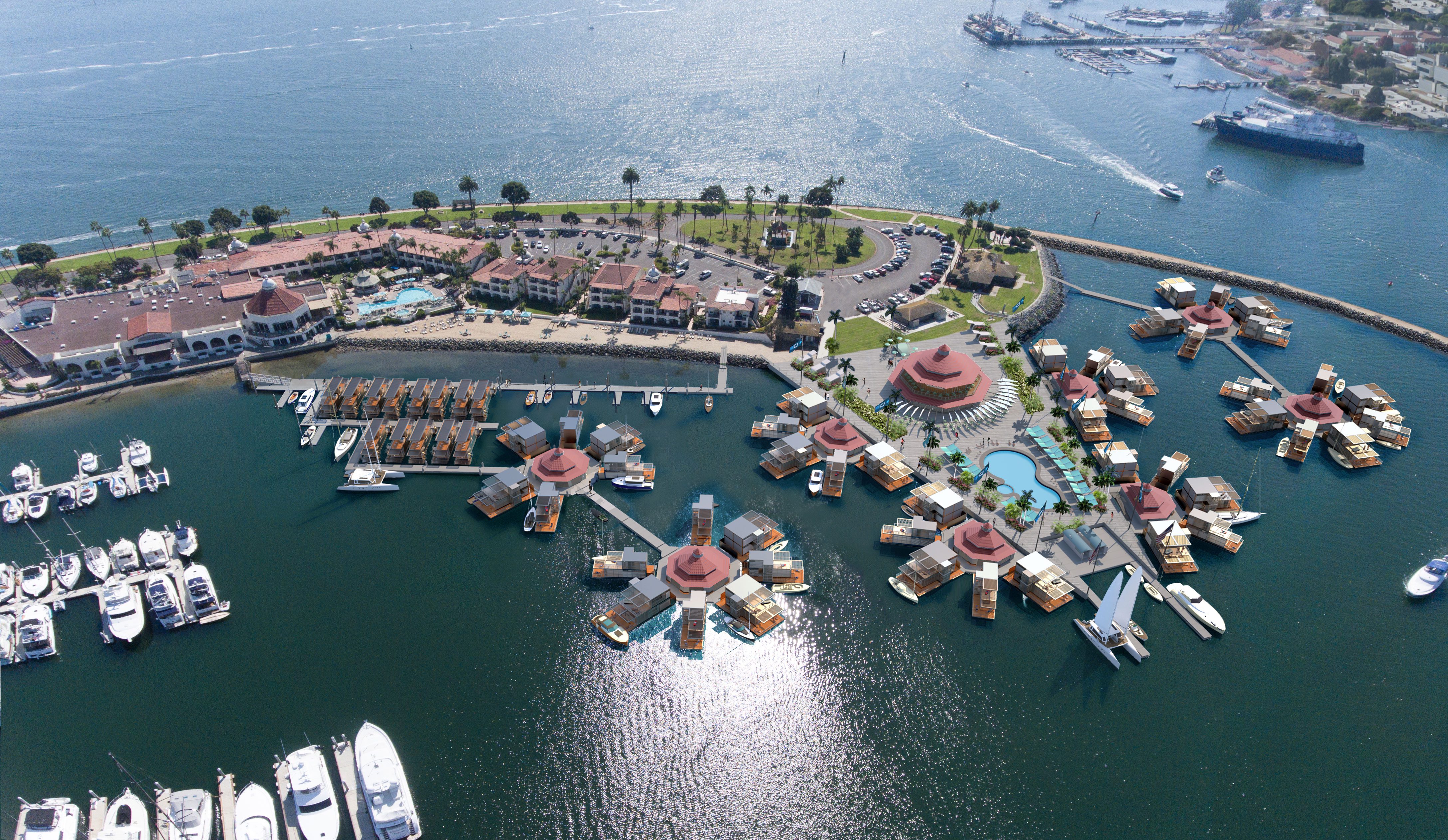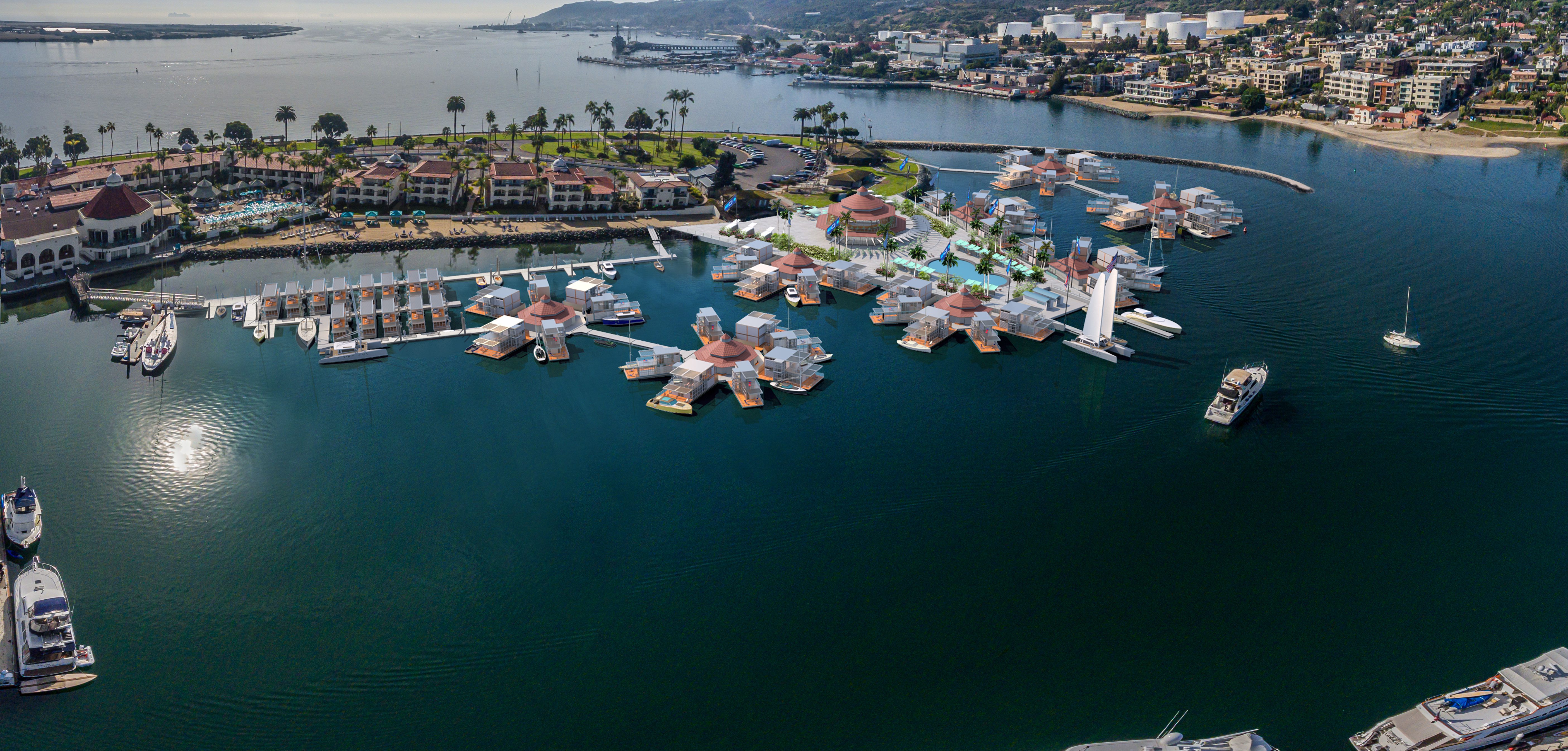 A design illustrating a luxury floating resort