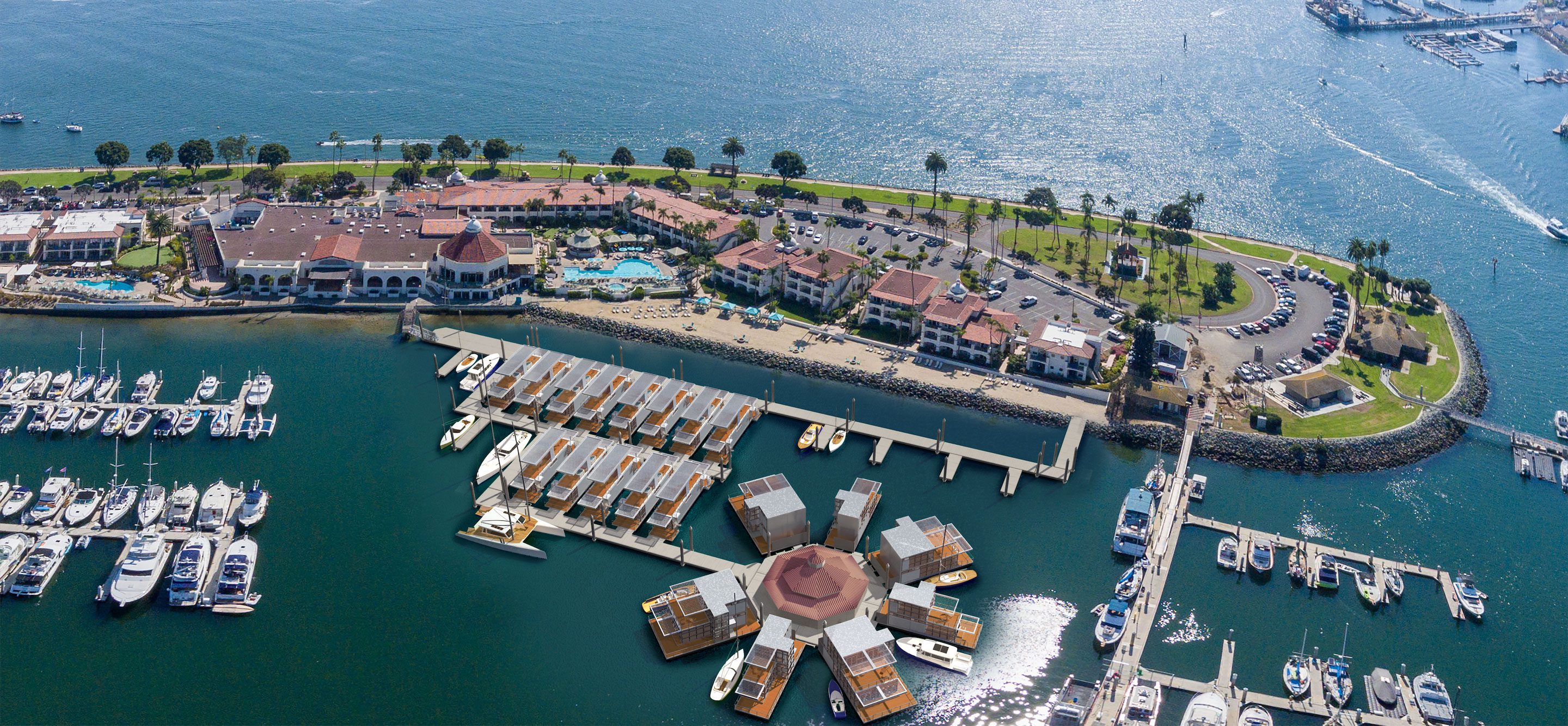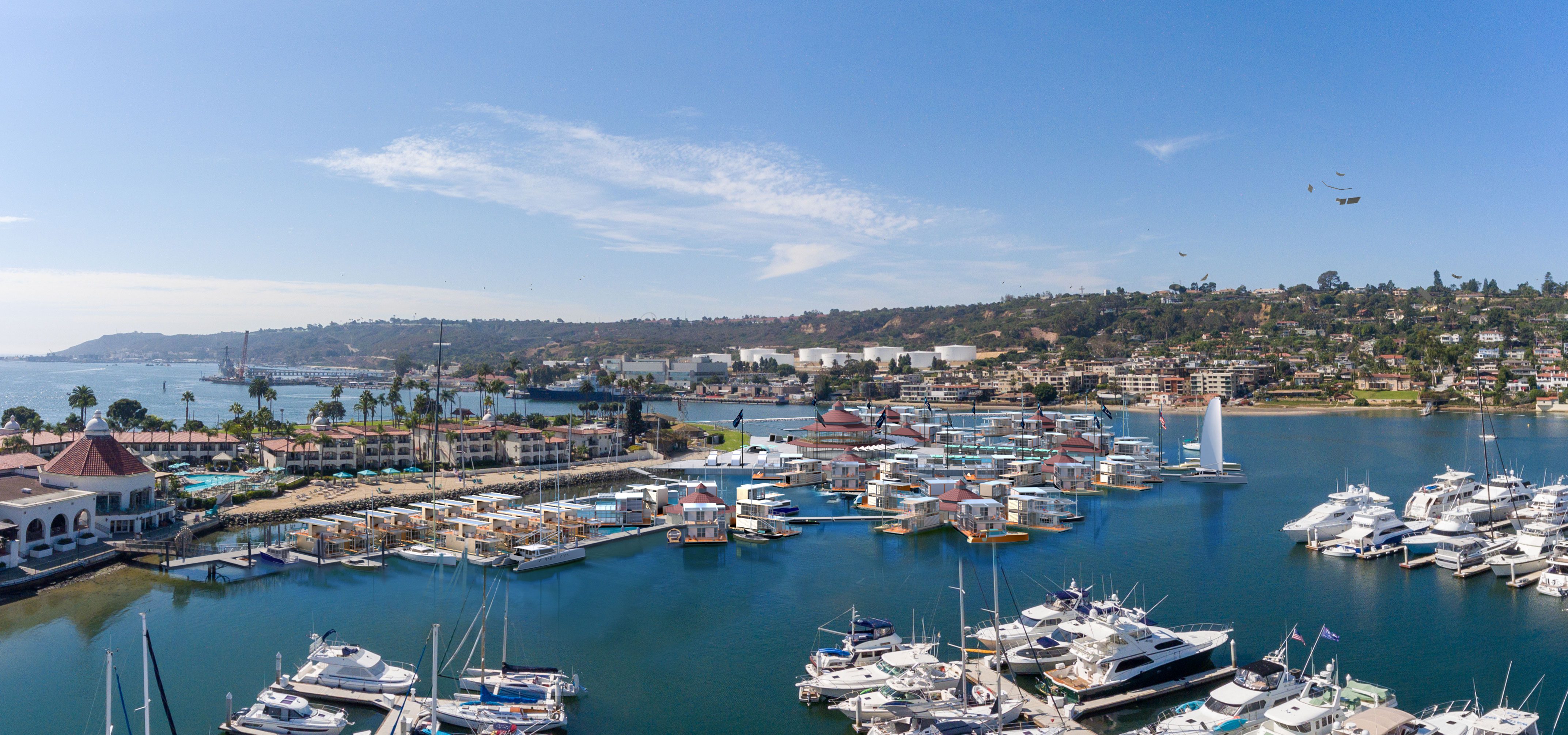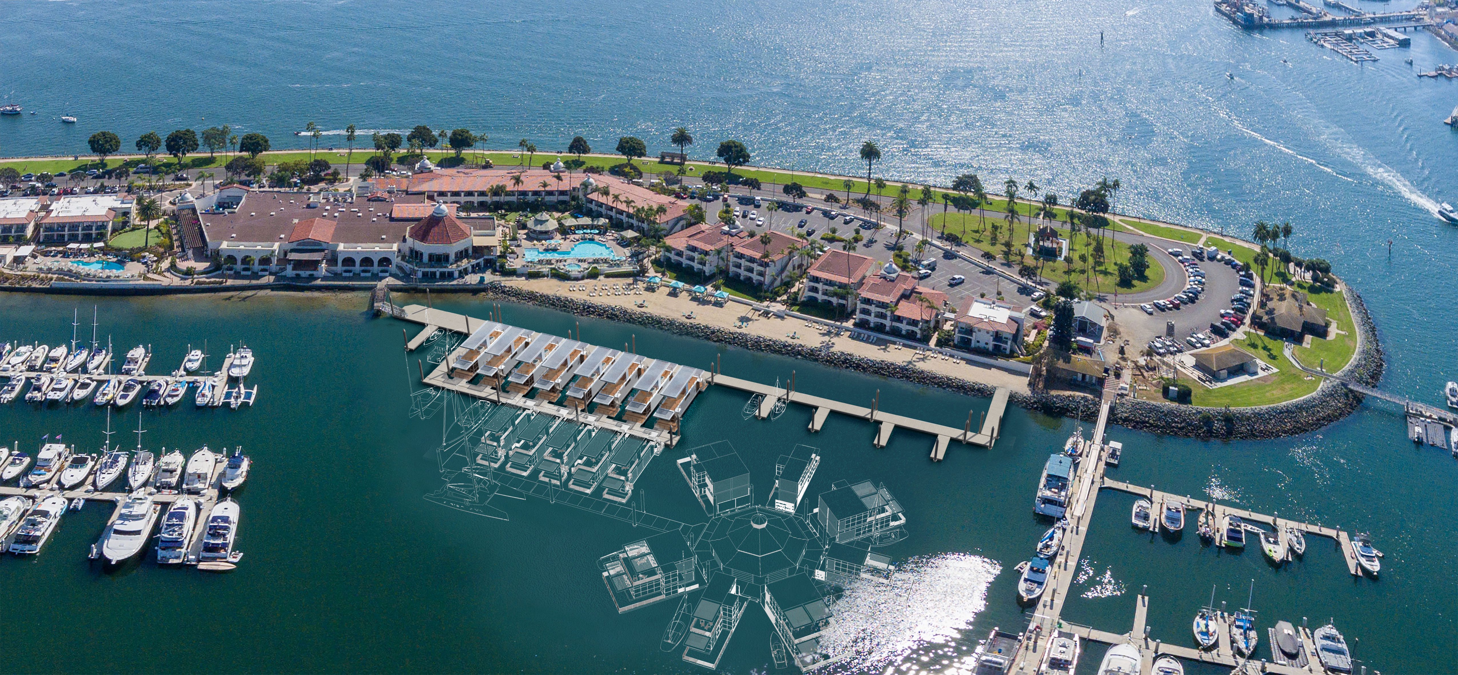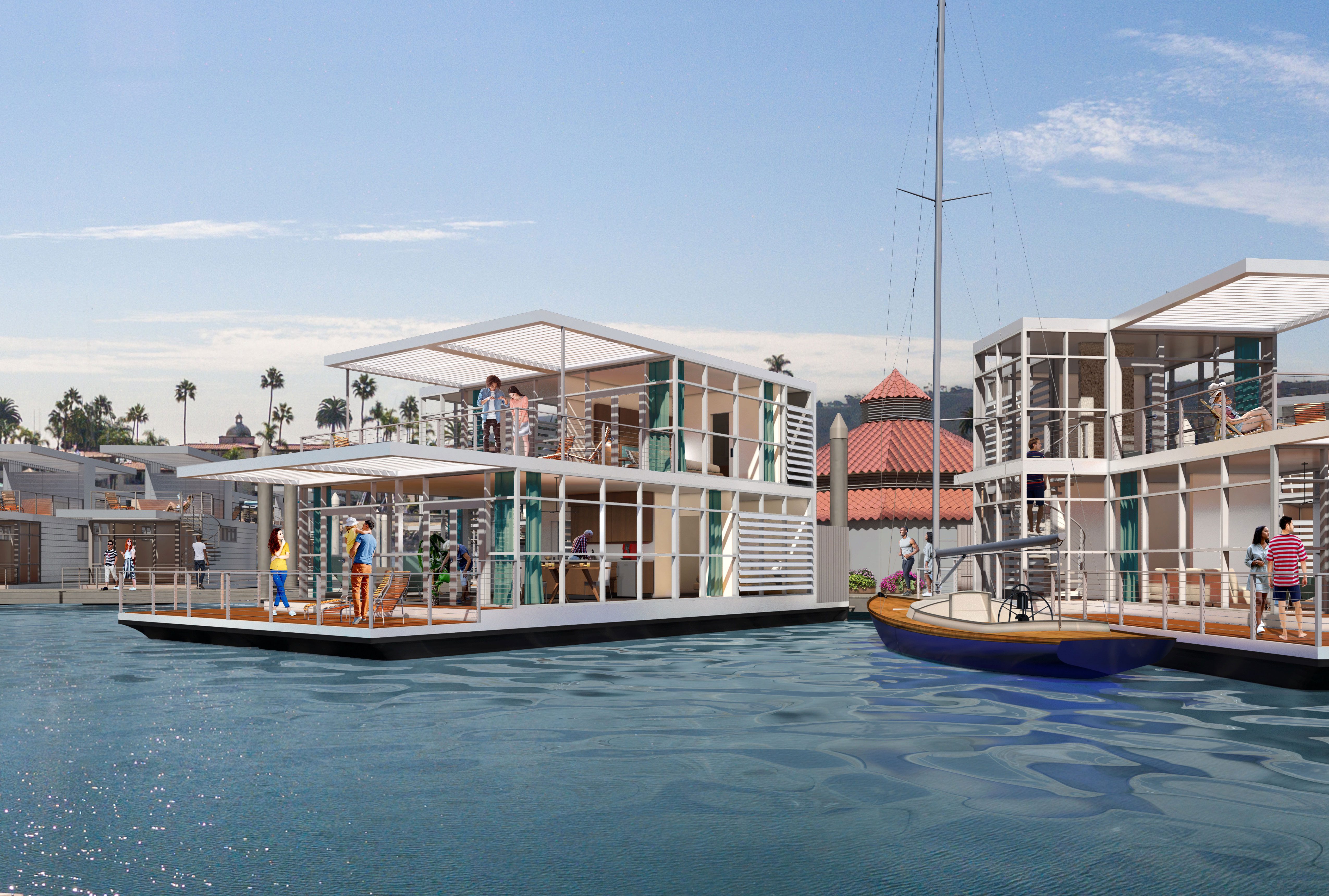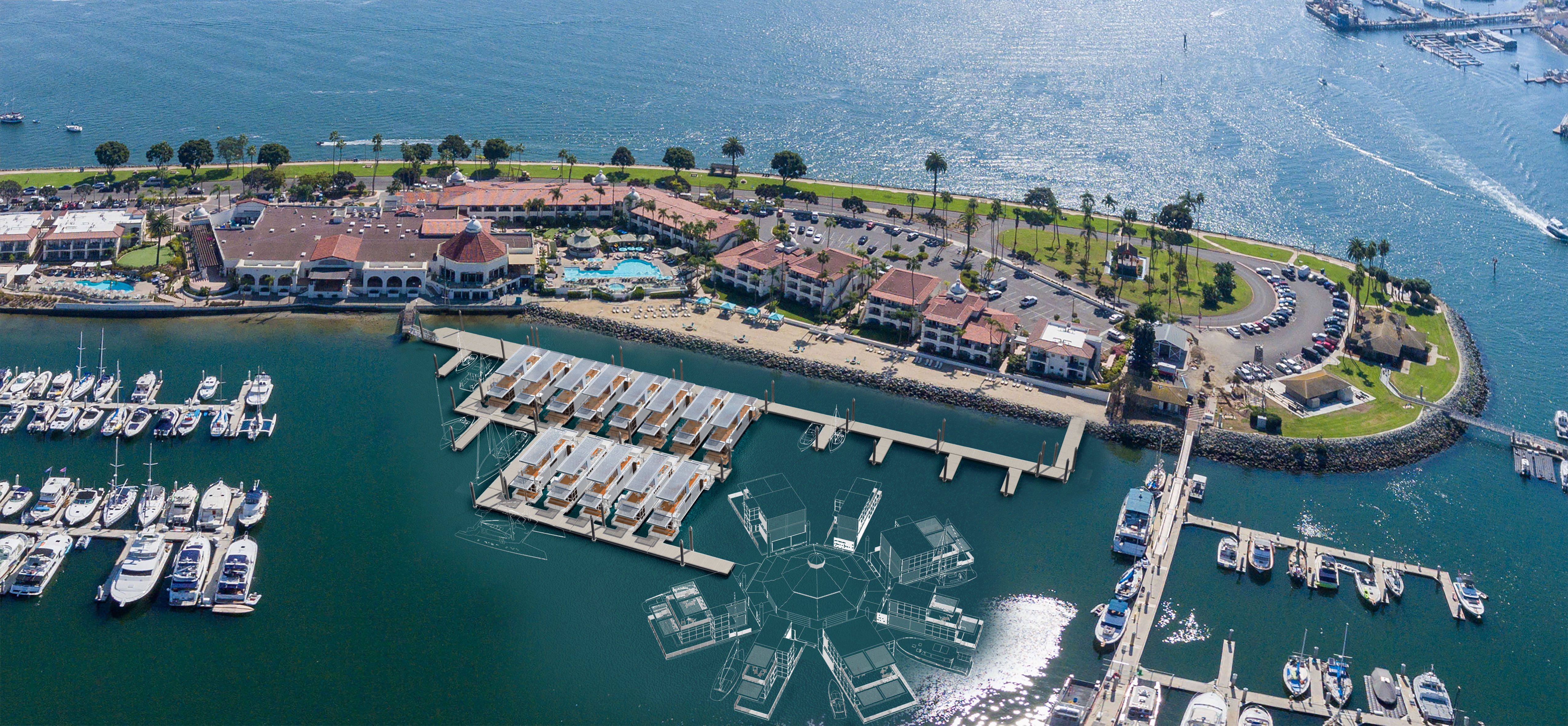 A design illustrating a luxury floating resort