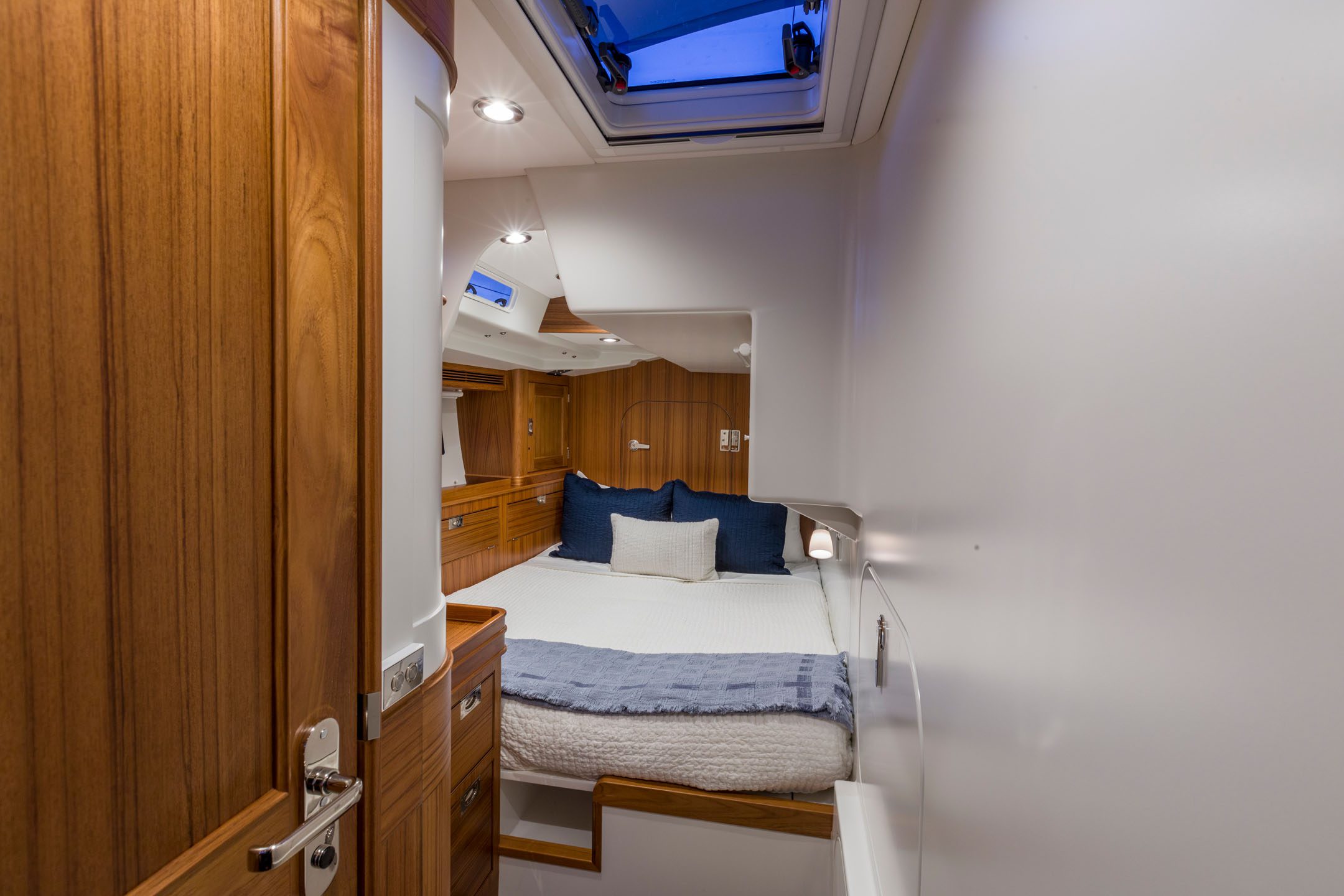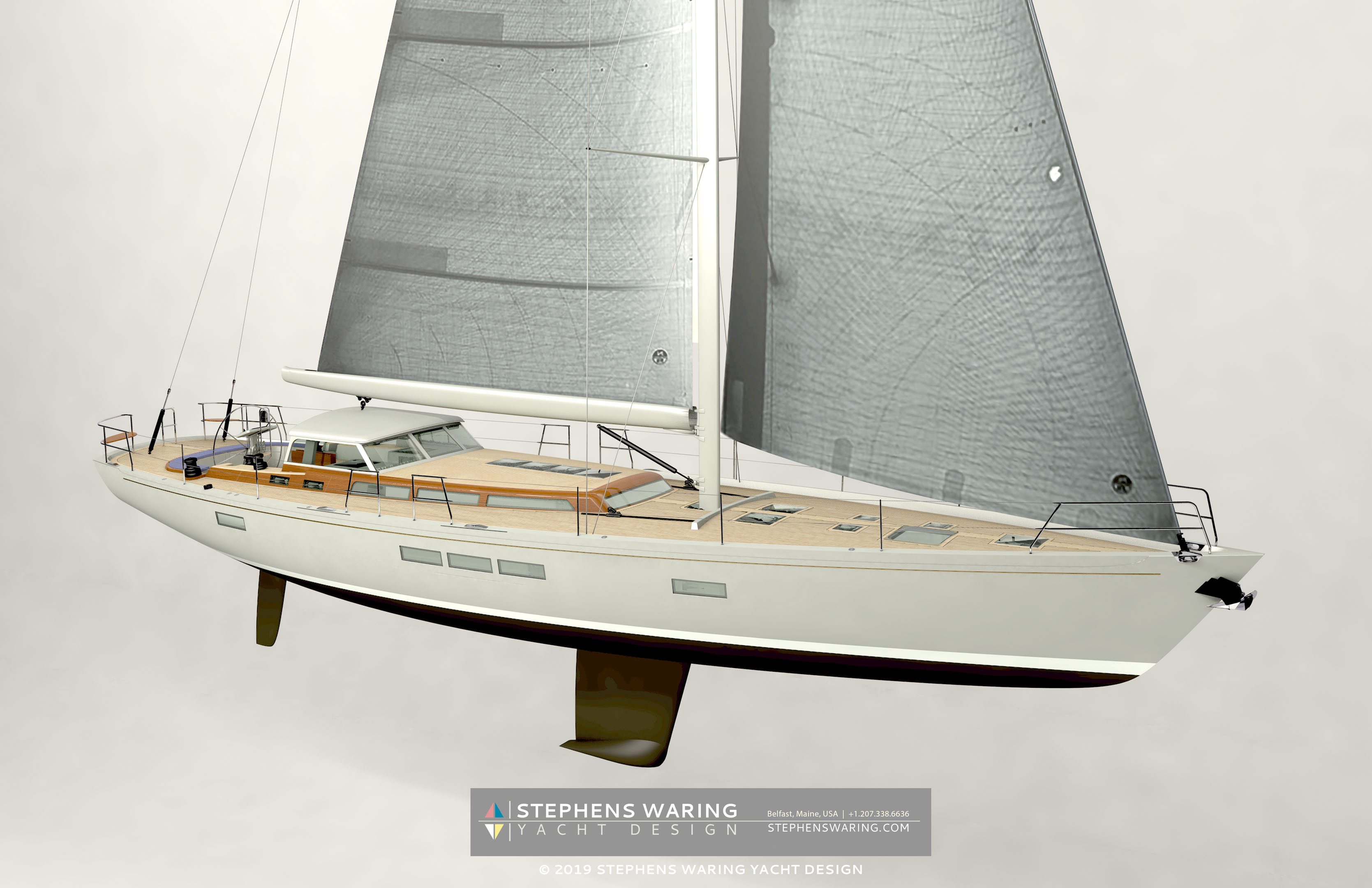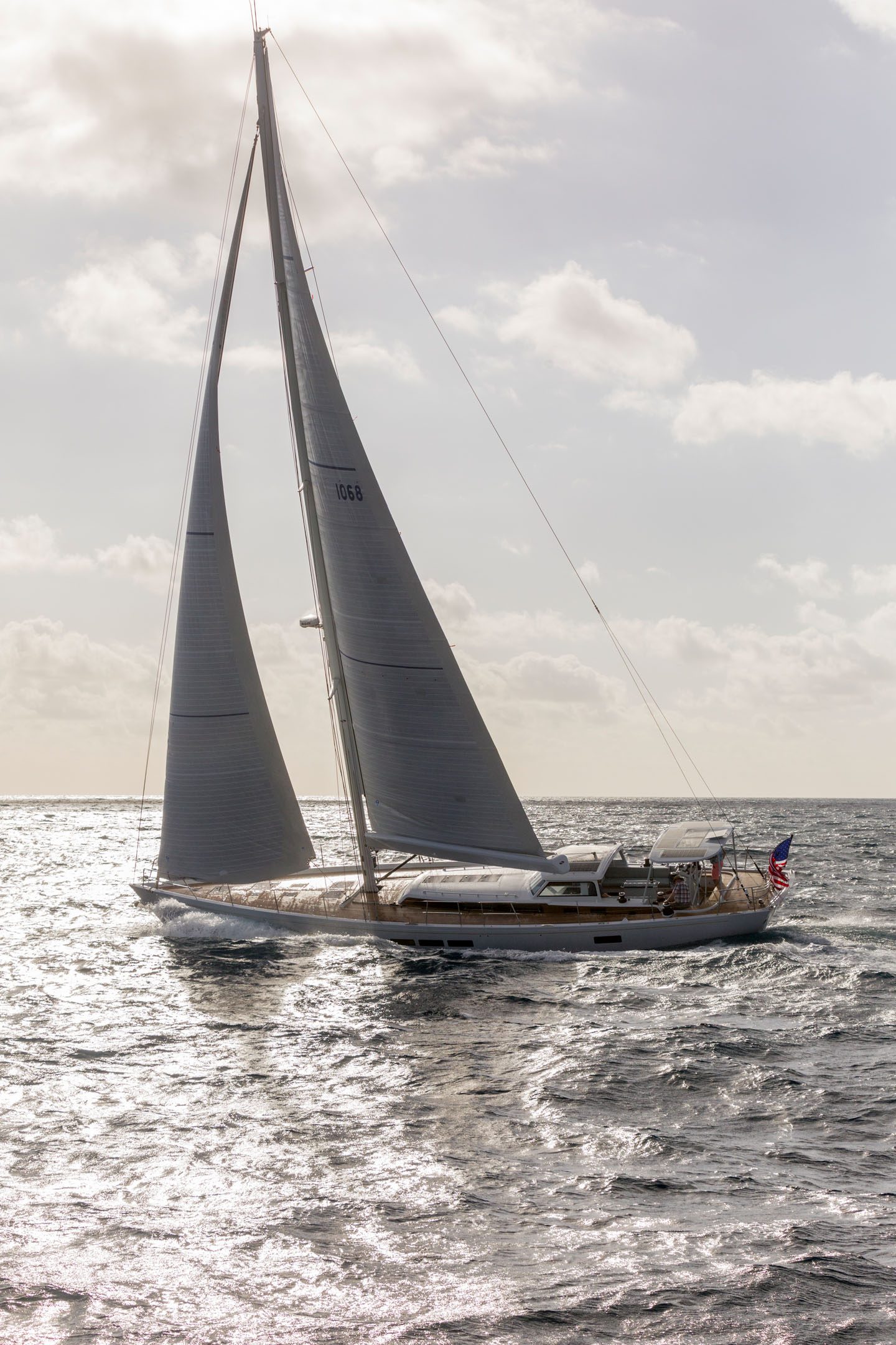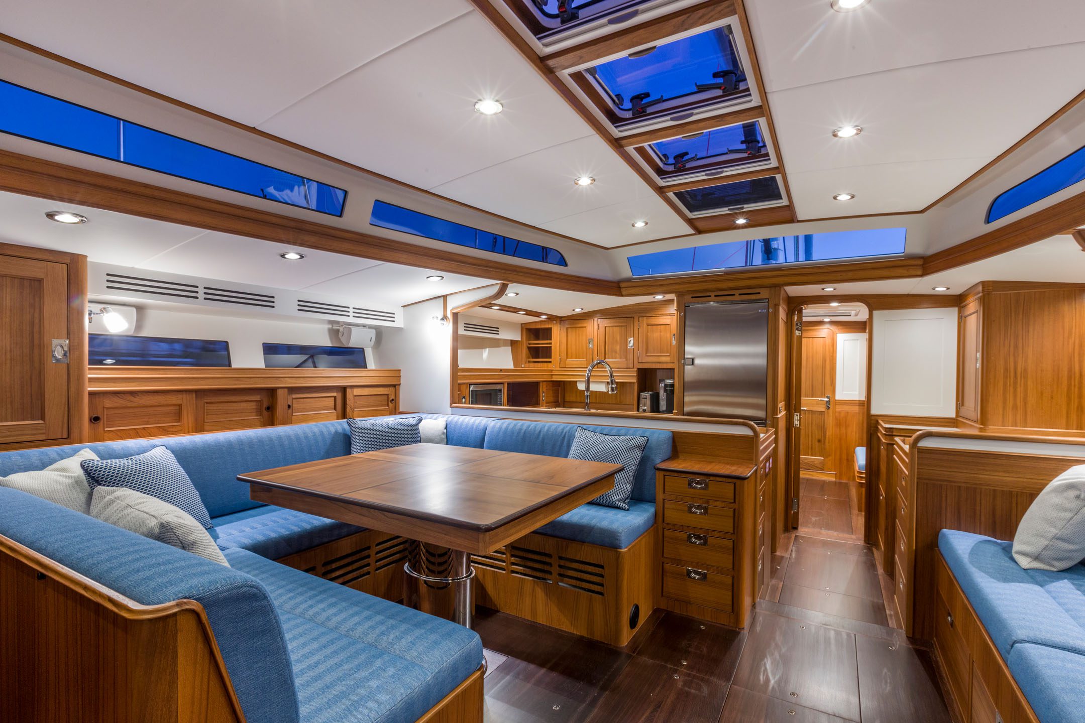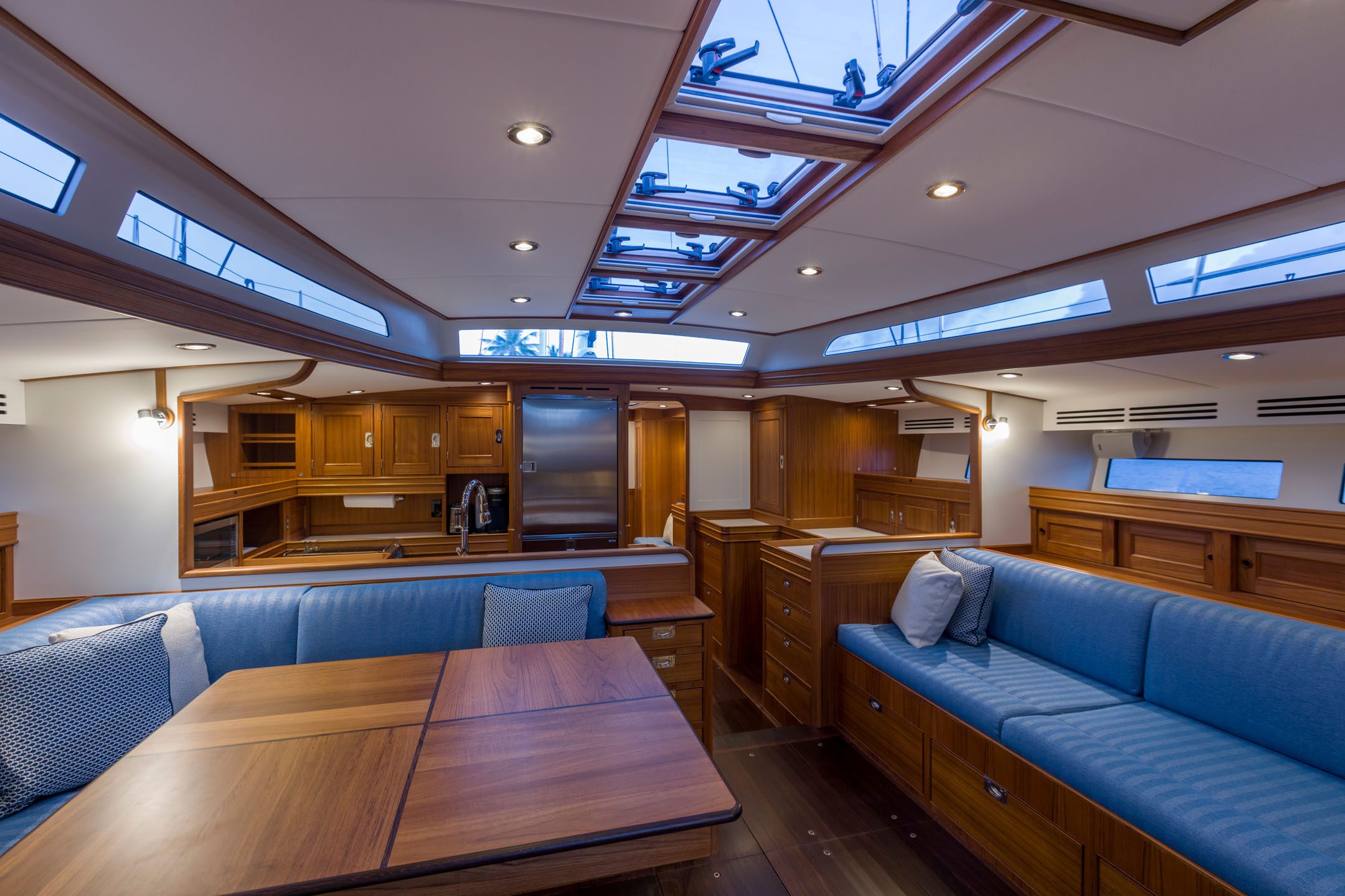 Cirrus not only envelopes SWYD’s Spirit of Tradition tastes, but is inspired by mid-century design. Her classic hull is modernized and enhanced by generous beam and moderate overhangs that promise great balance of performance with roomy deck space and interior accommodation. Clean, sleek style gives Cirrus a sense of understated luxury. Cirrus is built in foam-cored carbon composite construction for lightness, stiffness, and speed for inshore daysailing and off-soundings cruising.