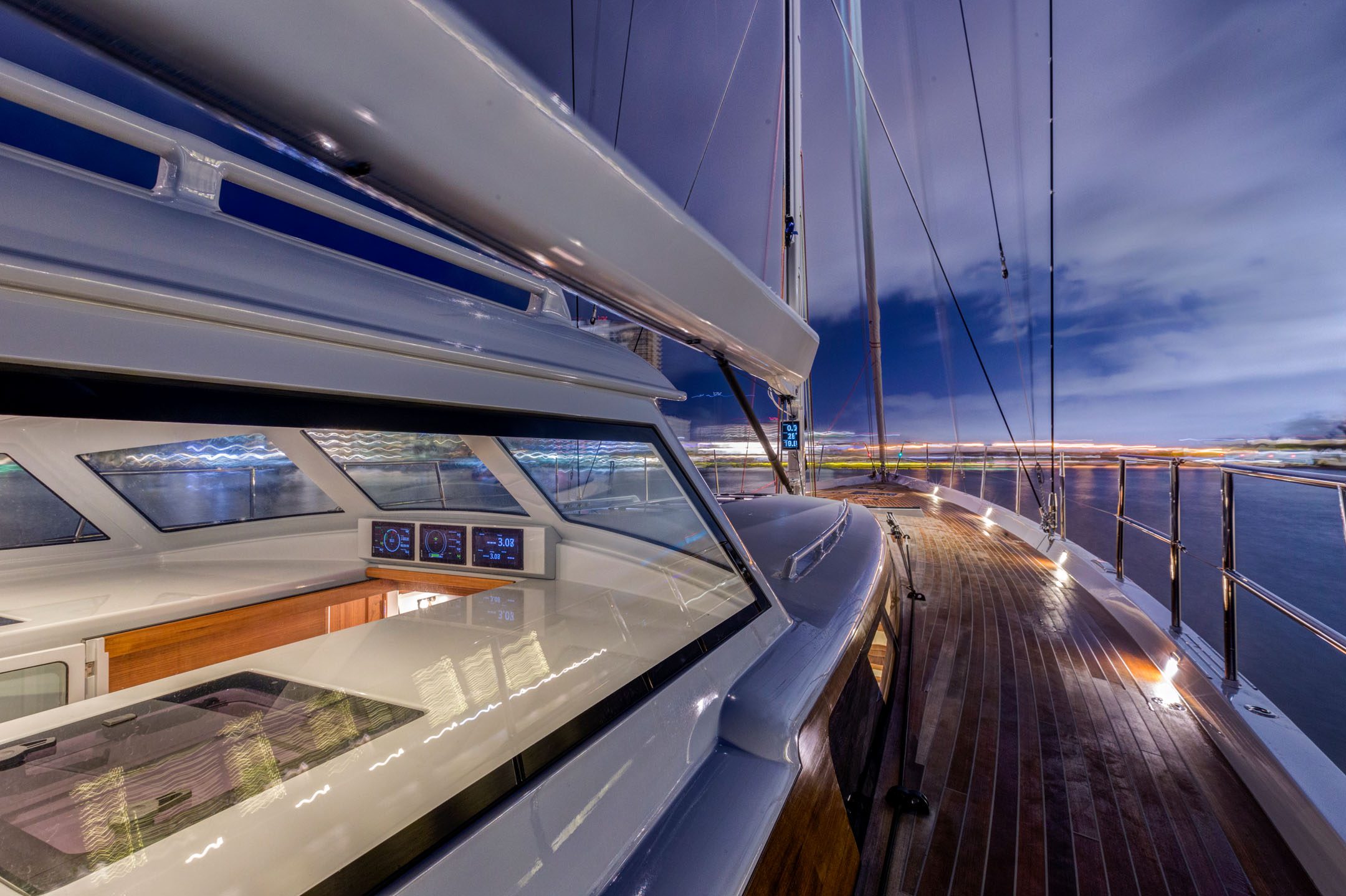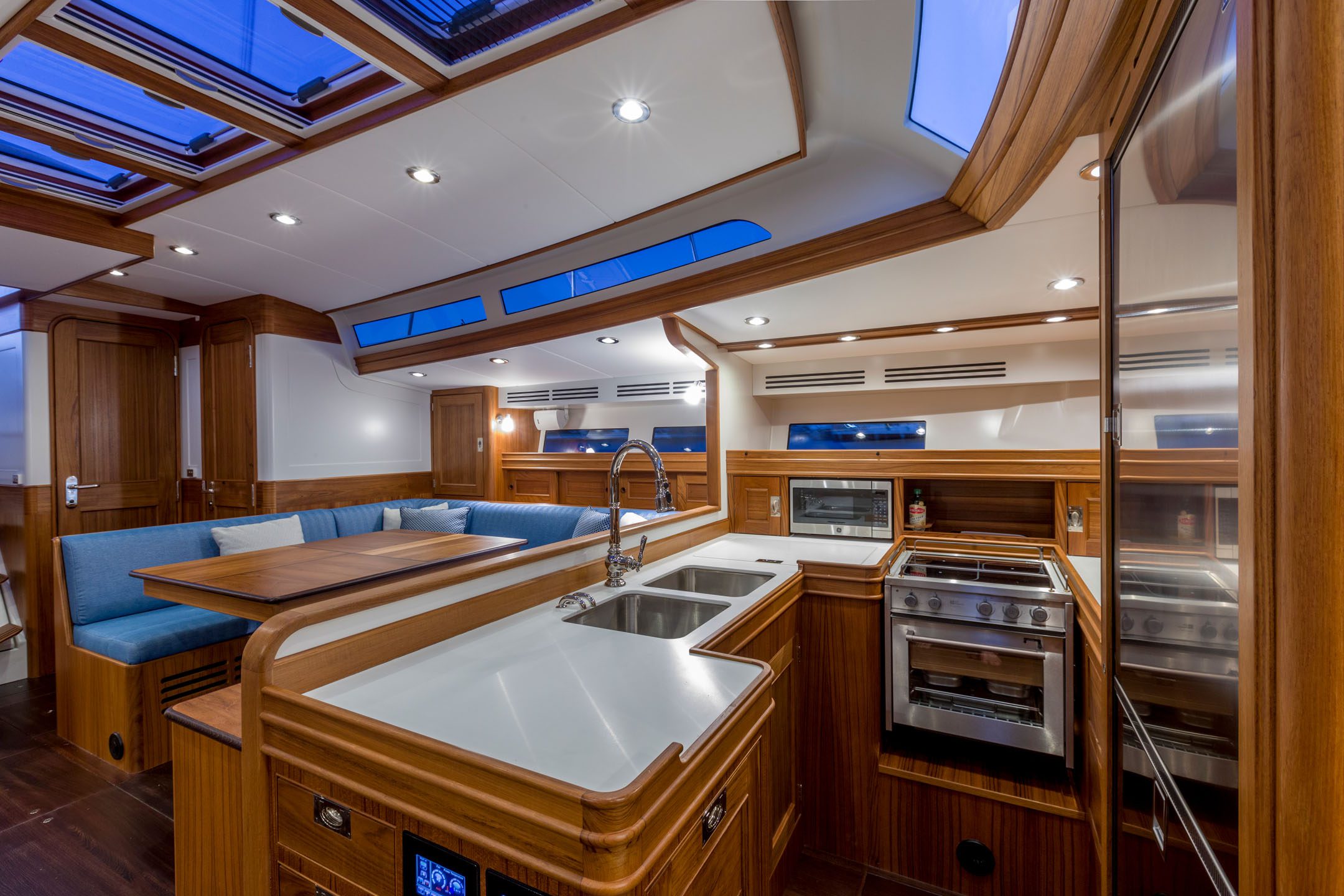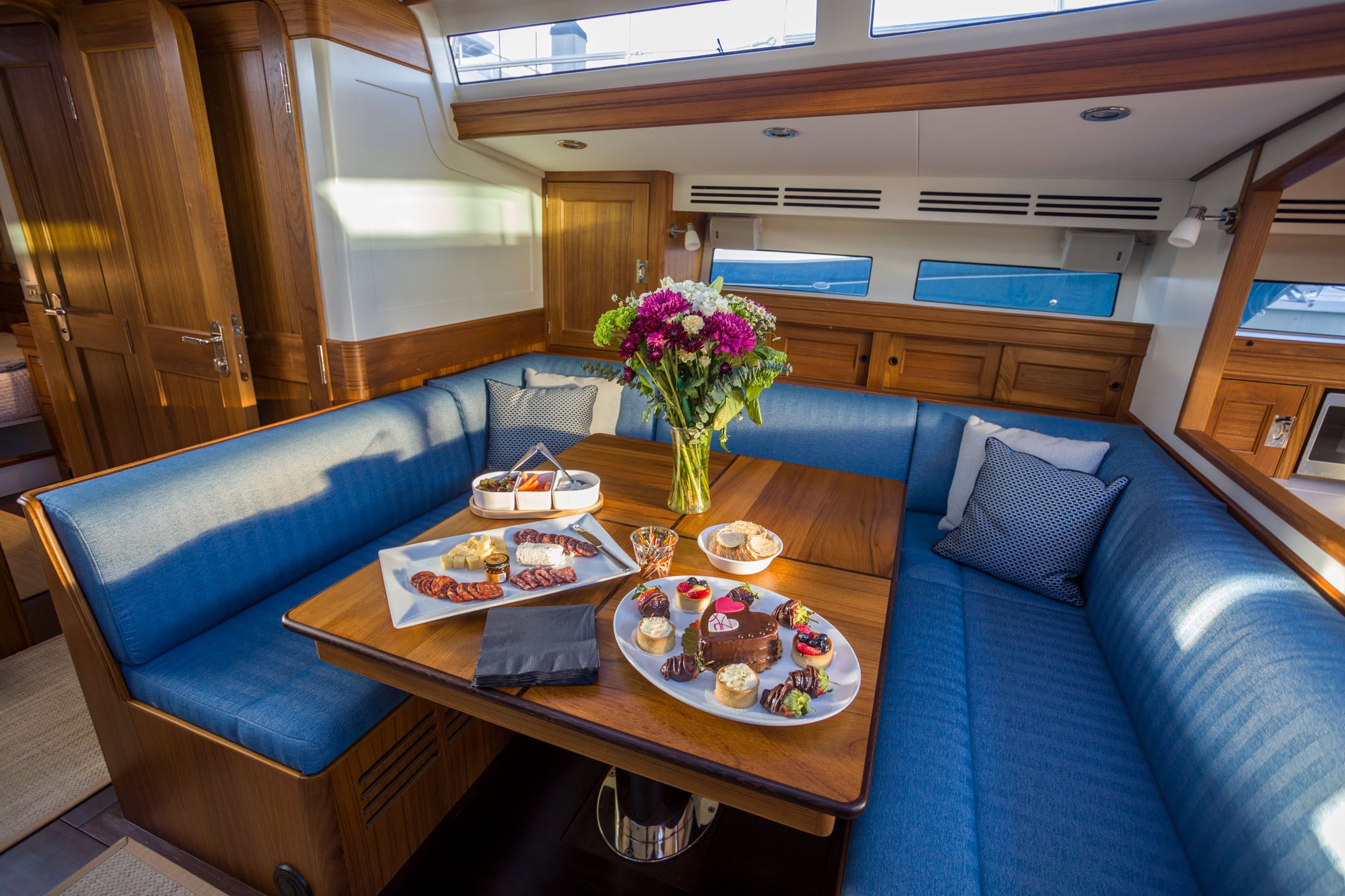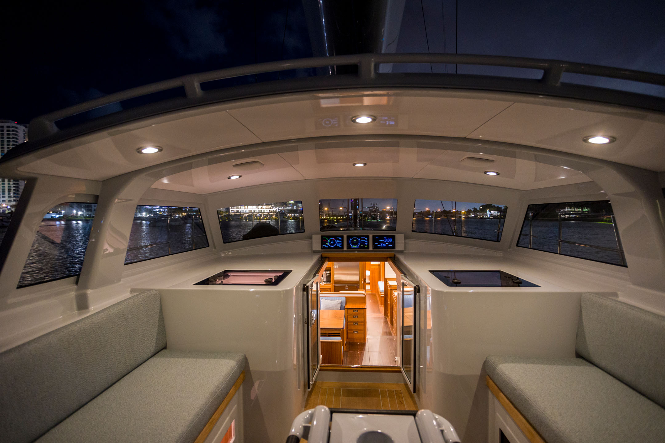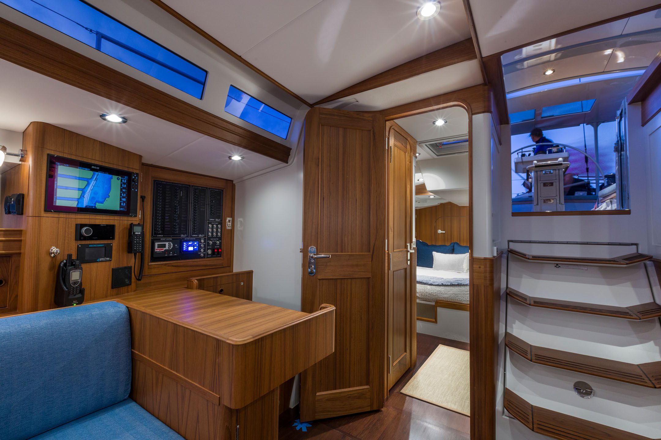 Cirrus not only envelopes SWYD’s Spirit of Tradition tastes, but is inspired by mid-century design. Her classic hull is modernized and enhanced by generous beam and moderate overhangs that promise great balance of performance with roomy deck space and interior accommodation. Clean, sleek style gives Cirrus a sense of understated luxury. Cirrus is built in foam-cored carbon composite construction for lightness, stiffness, and speed for inshore daysailing and off-soundings cruising.
