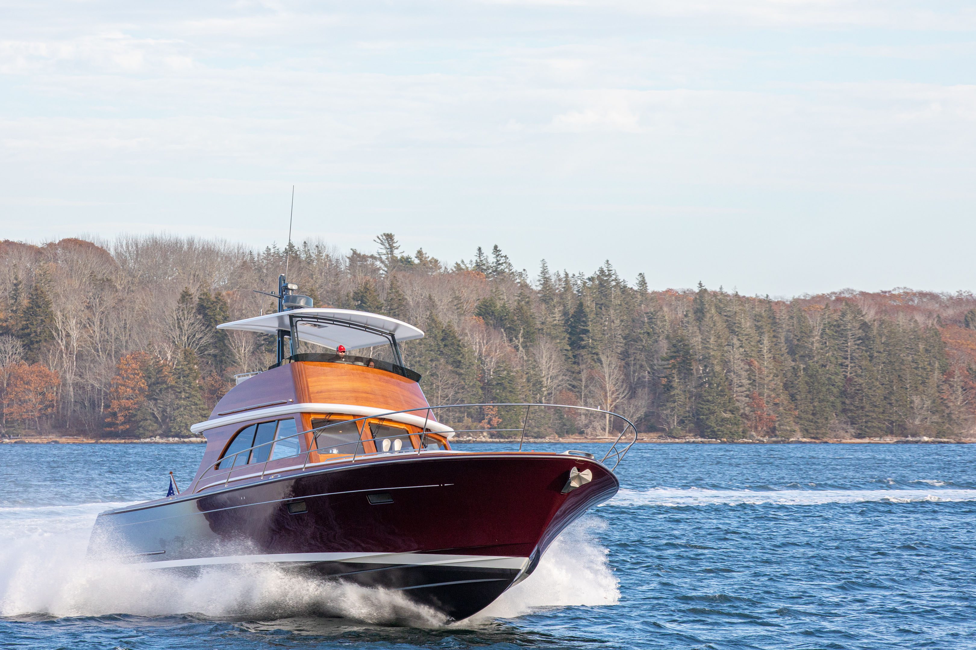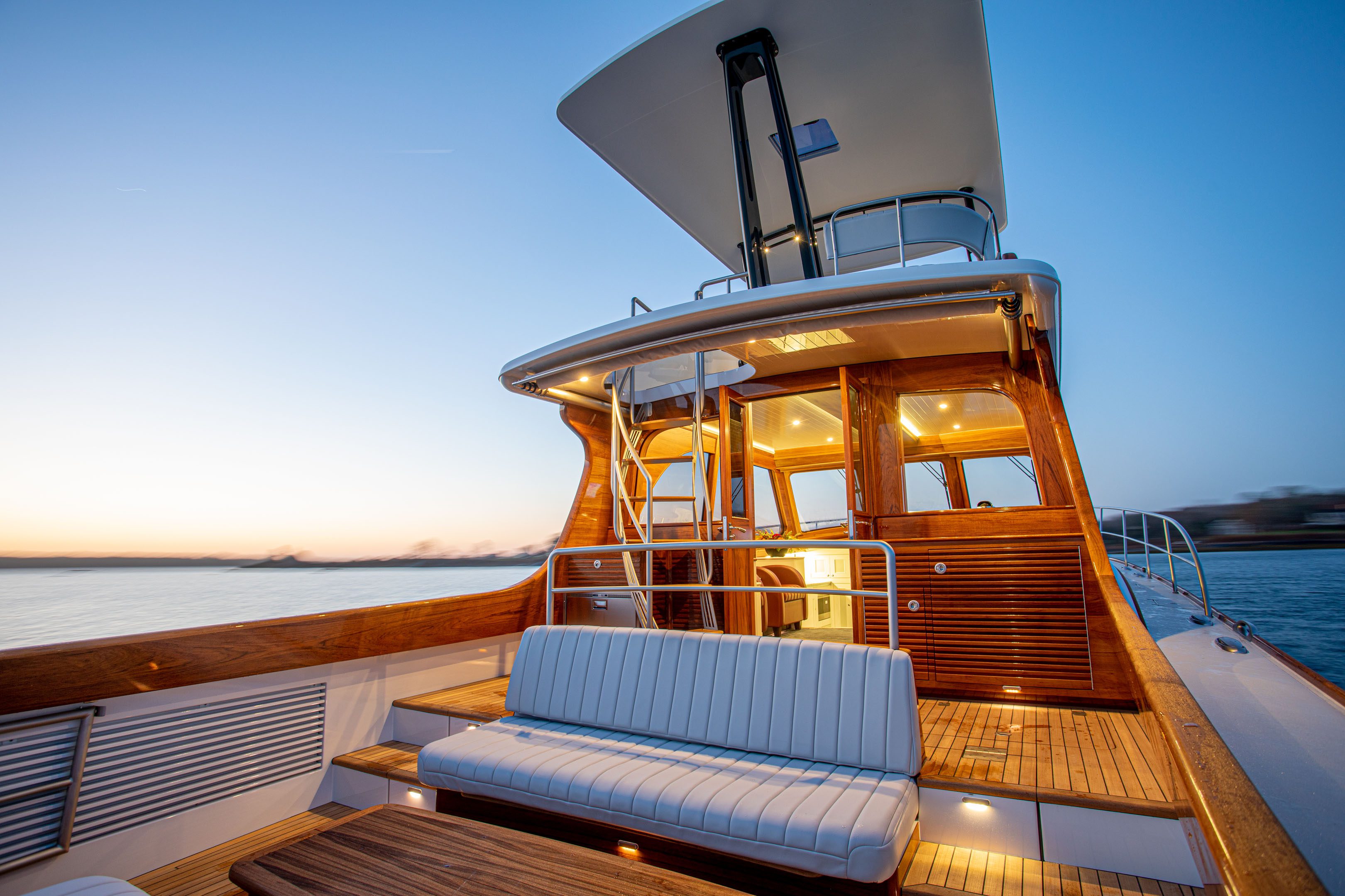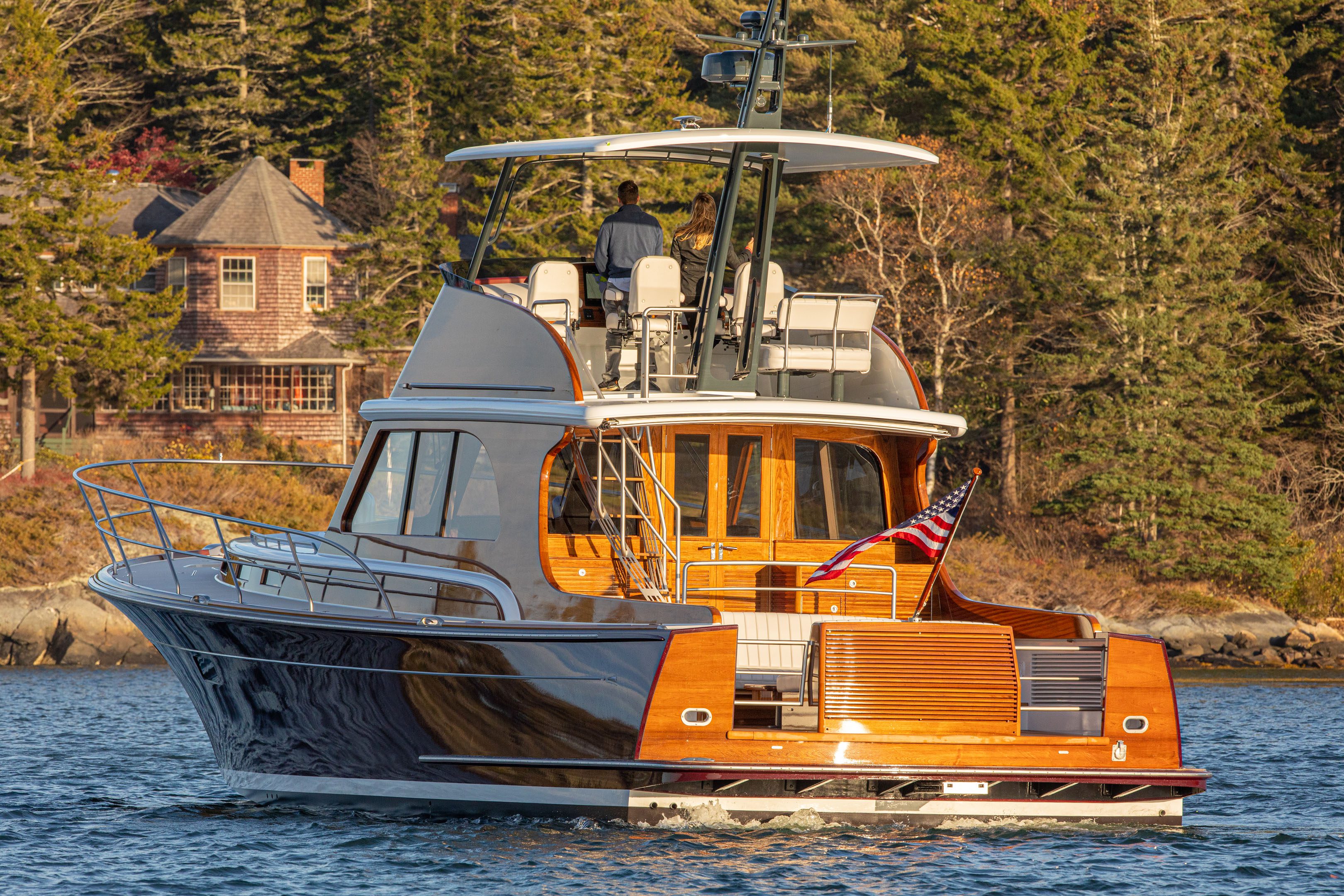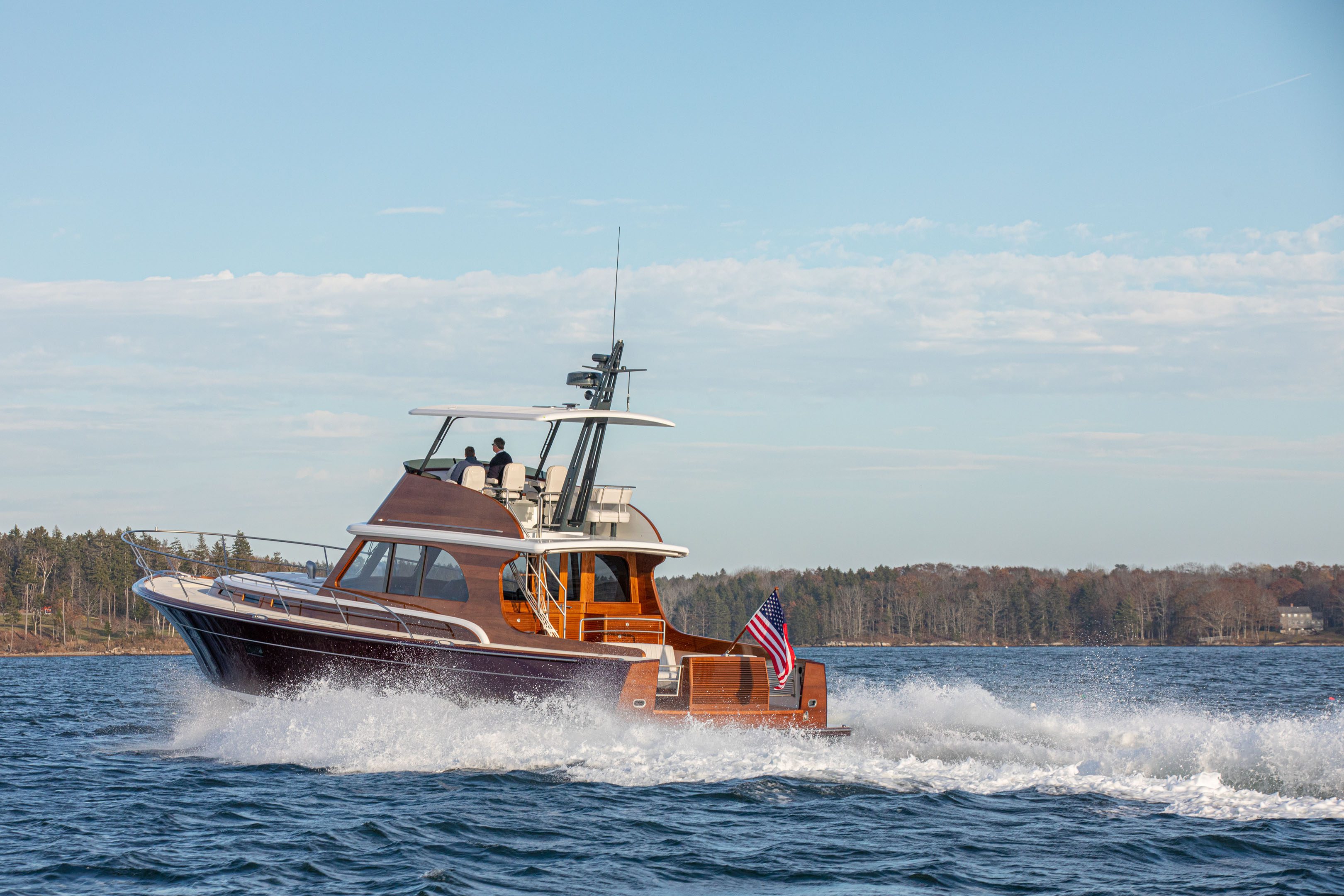 The 57 Classic Express conveys leading design at the intersection of Downeast lineage and a clear Spirit of Tradition vernacular. The 57 Classic Express modernizes pure boating enjoyment and lifestyle on the water’s edge. The yacht is easily handled and docked with a flick-of-the-wrist—she provides luxury car performance with top speeds at 40 knots.