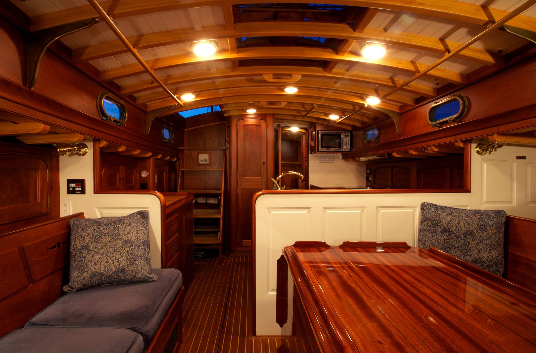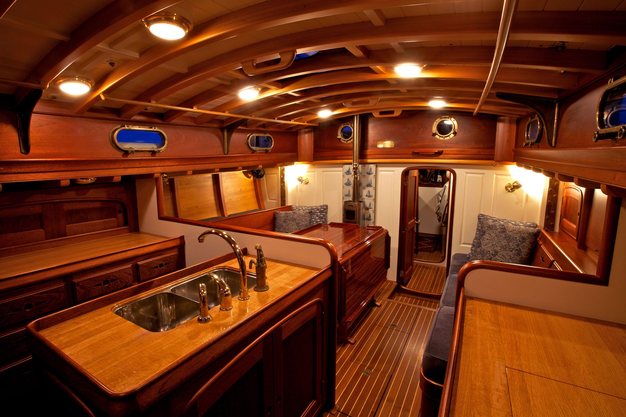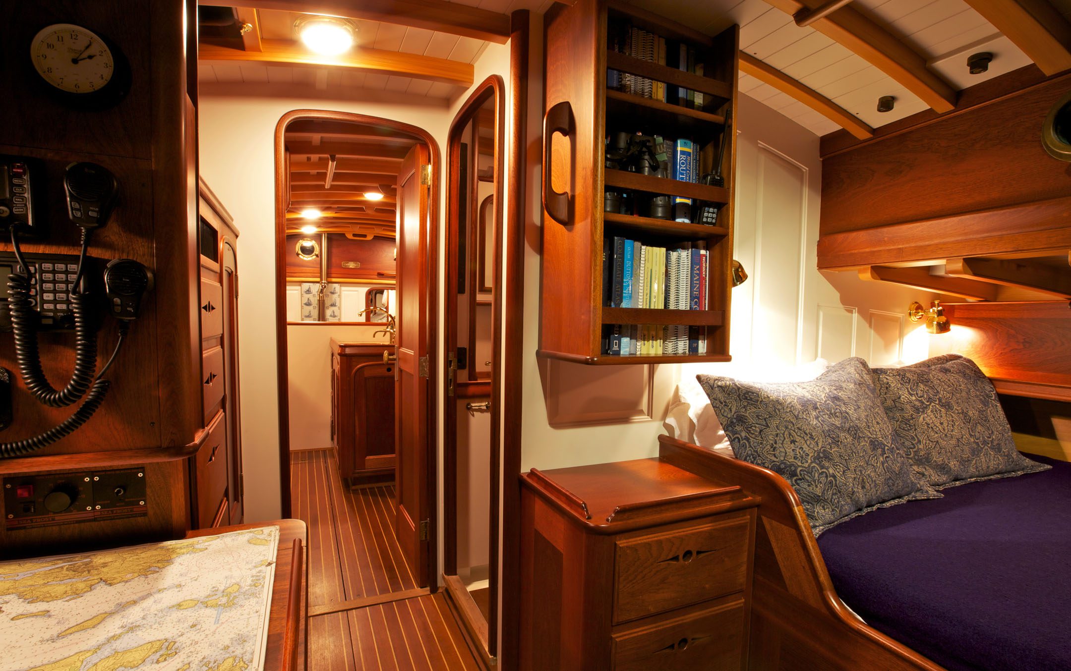 Marjorie also incorporates a layer of Kevlar within her hull layup to protect against collisions with flotsam. With a fully-equipped interior in mahogany and oak, she’s ready to deliver true sailing adventures.