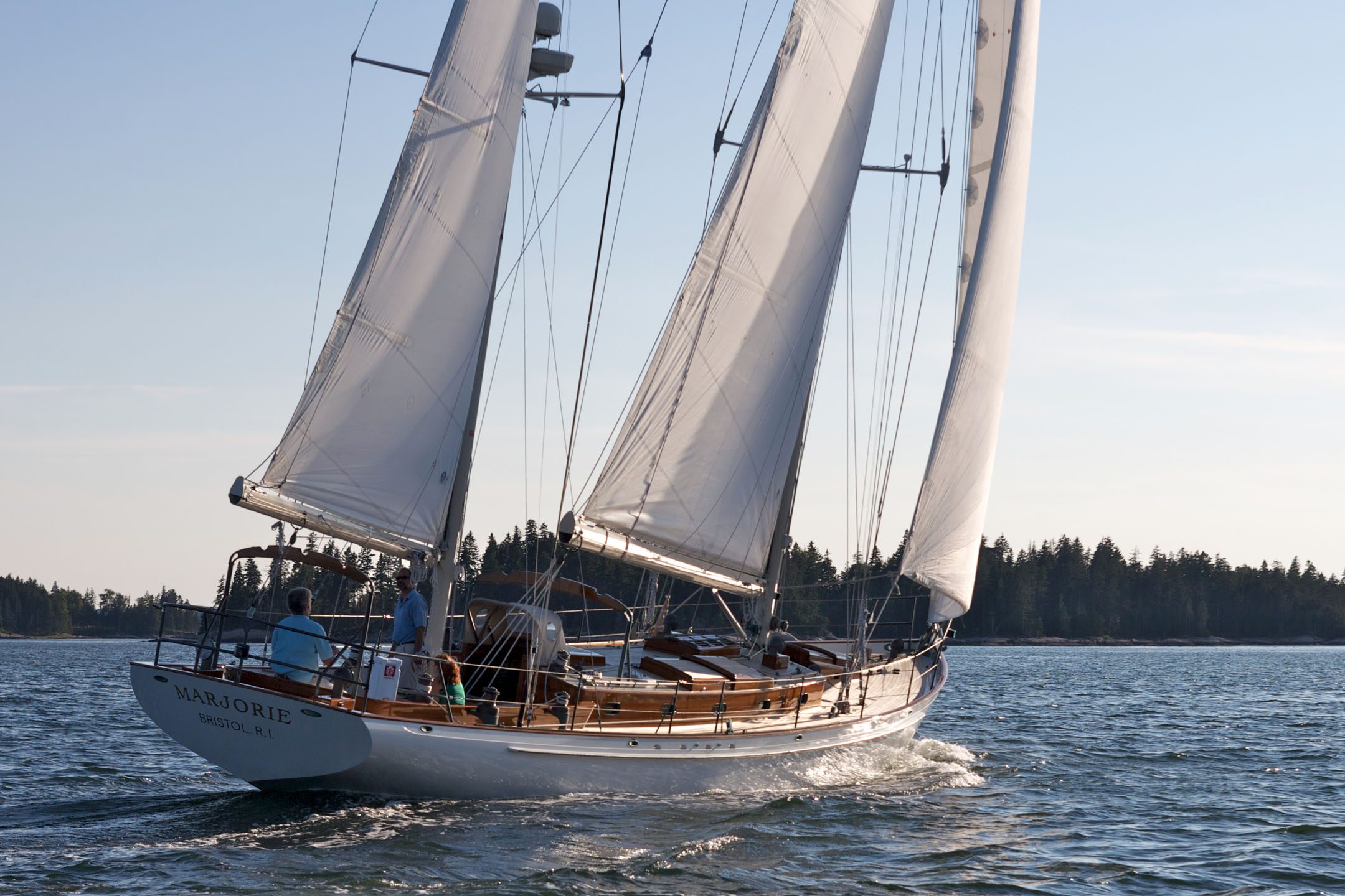 Marjorie is a serious Spirit of Tradition cruising boat, that also boasts an impressive turn of speed. We called for only the highest quality, proven materials in her construction; she has carbon spars, custom all-bronze hardware, and top-quality timber in her hefty cold-molded wood hull.