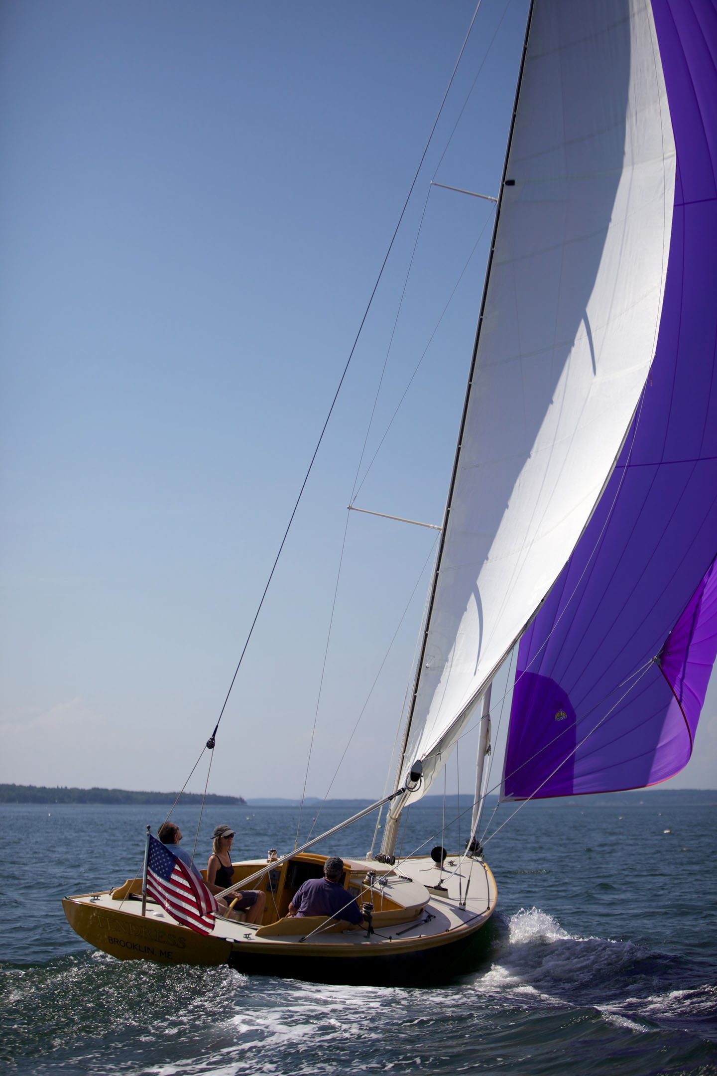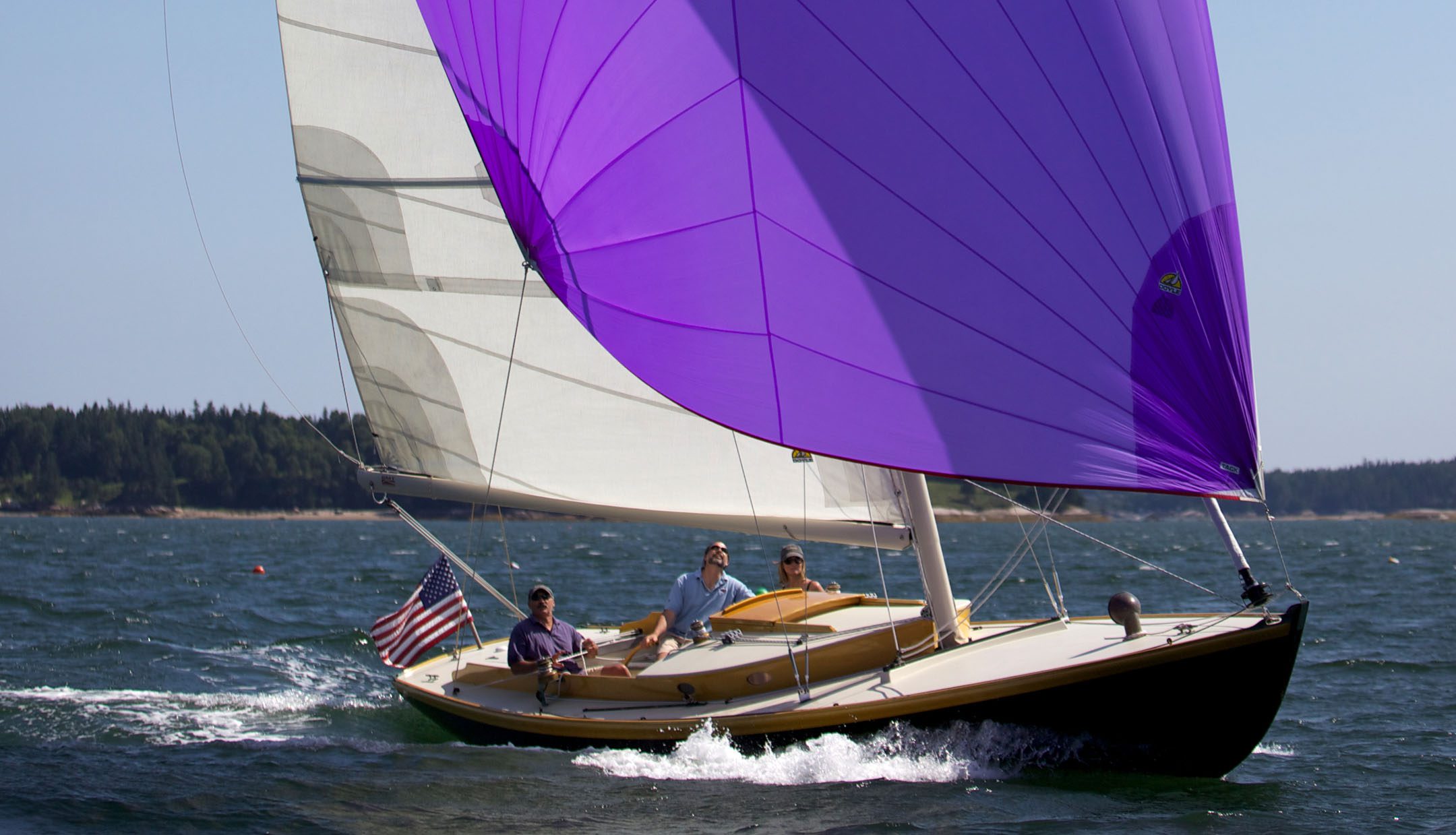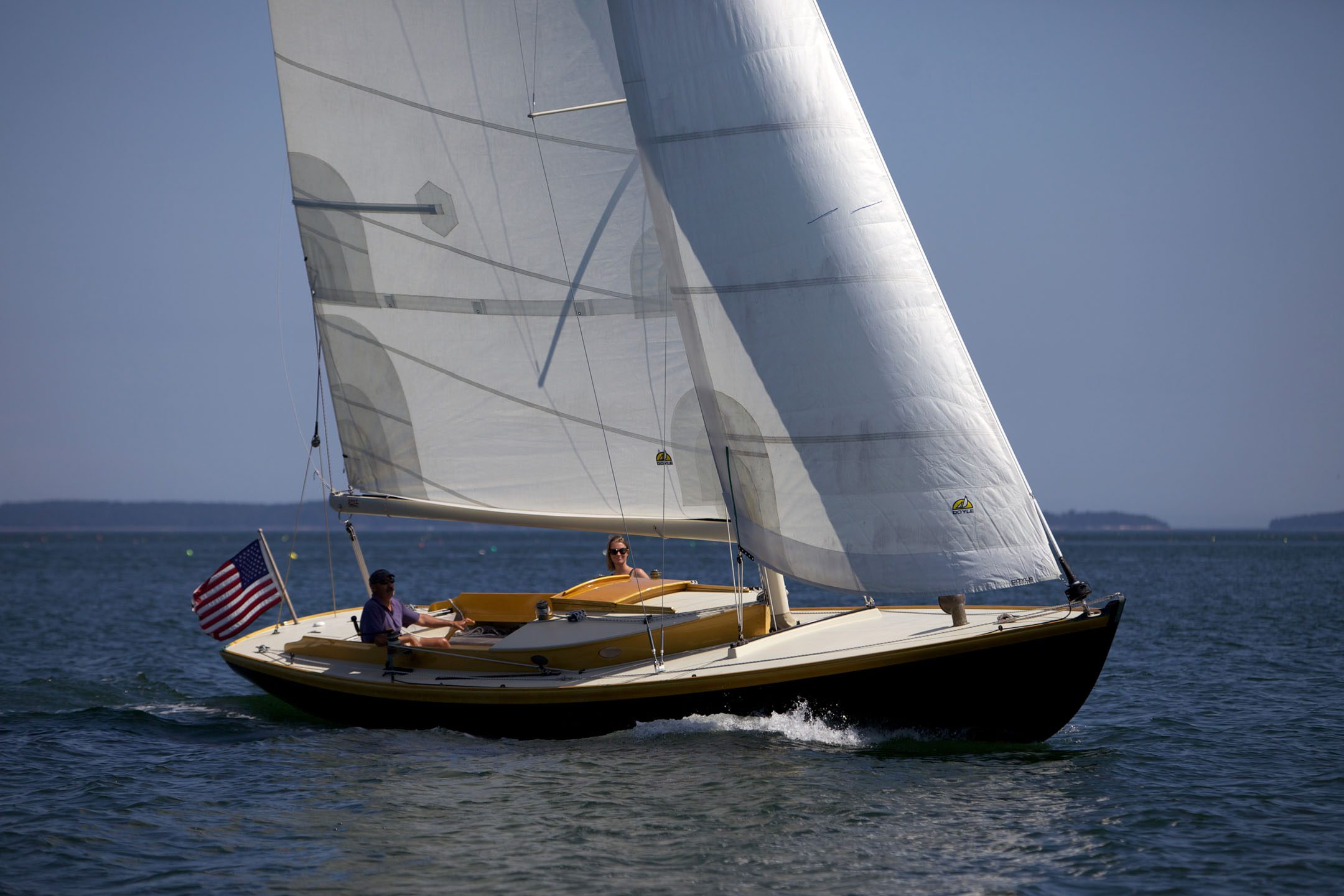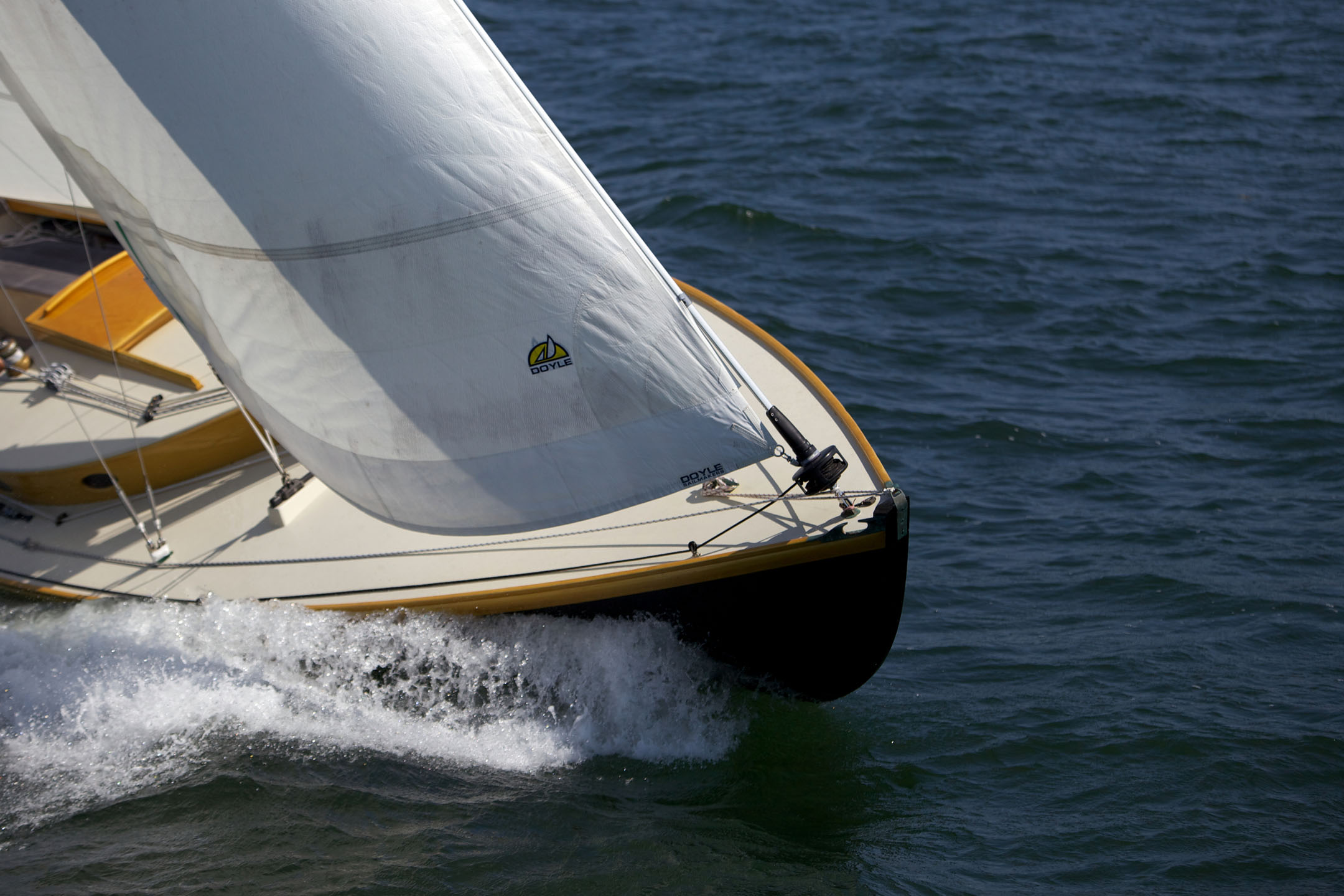Tendress combines classic good looks, lightweight wood-composite construction, modern rig, and underbody in a delightful new package. Her displacement of less than 8,000 pounds gives her lively performance with a big-boat feel. All lines lead to the cockpit for effortless single-handing. Tendress’ long cockpit with sculpted teak seats will comfortably accommodate a crowd for a sunset cruise. Her traditional cuddy cabin contains amenities for overnighting, while the varnished wood coaming and custom-shaped sheerstrake harken back to the Herreshoff era.