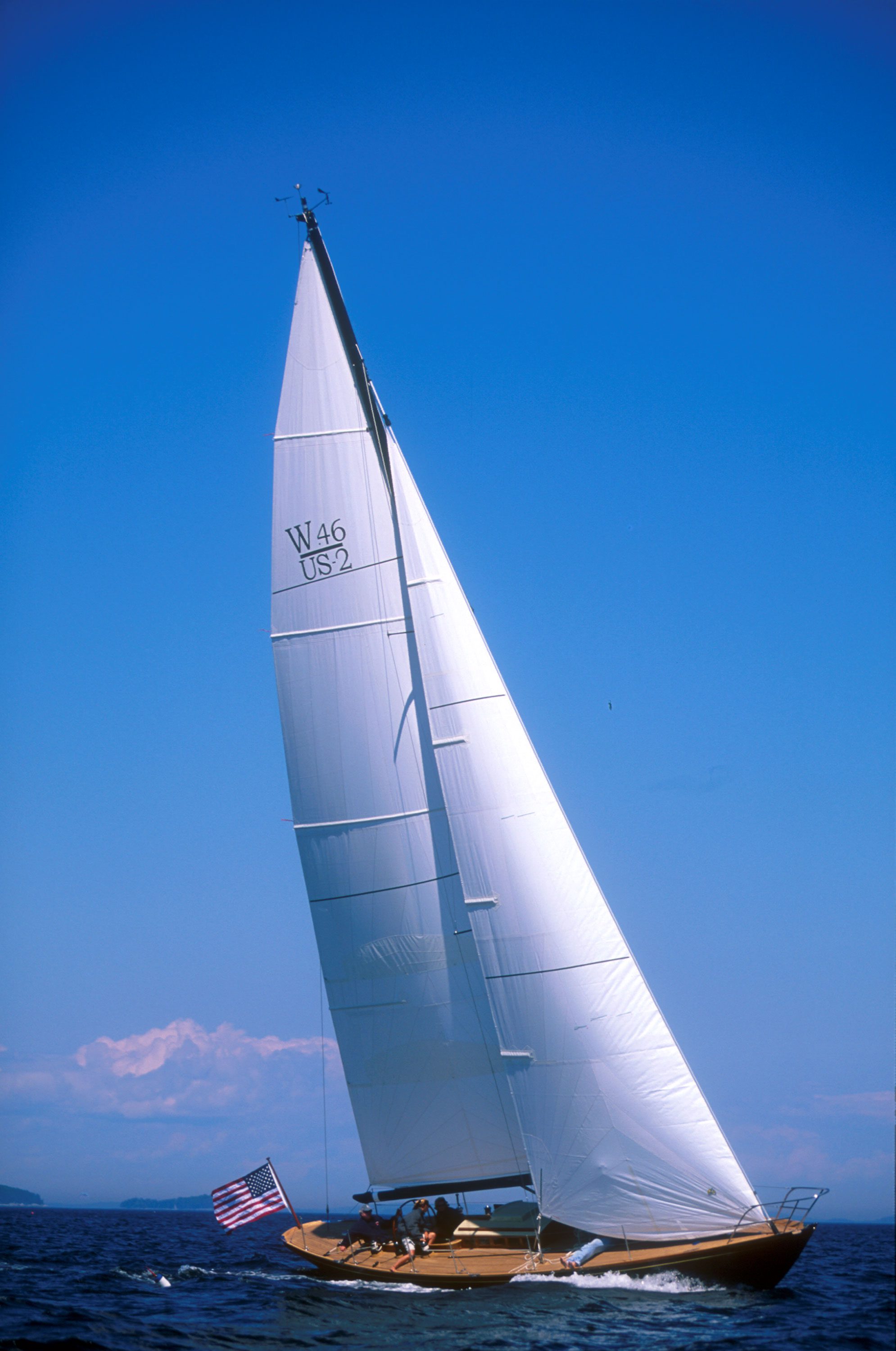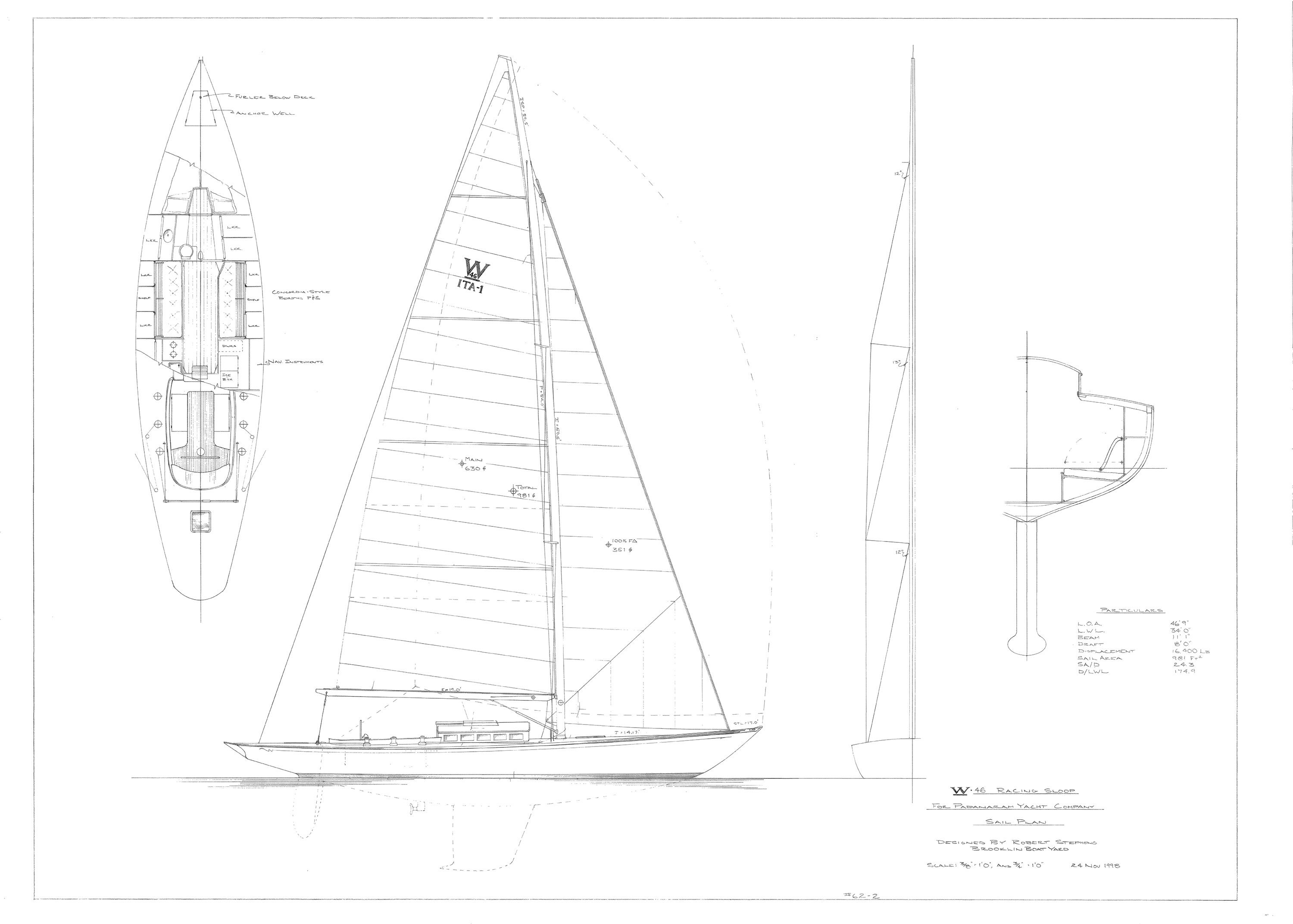 The little sister to the iconic W-76. She evokes the same sense of yesterday’s yachting as her larger stablemate, but in a much more accessible size. Easy for a couple to daysail or a quartet to race, her standing headroom, full galley, and four berths make her a comfortable cruiser also. She features long, graceful overhangs and flush deck above water and light displacement and high-performance foils below.